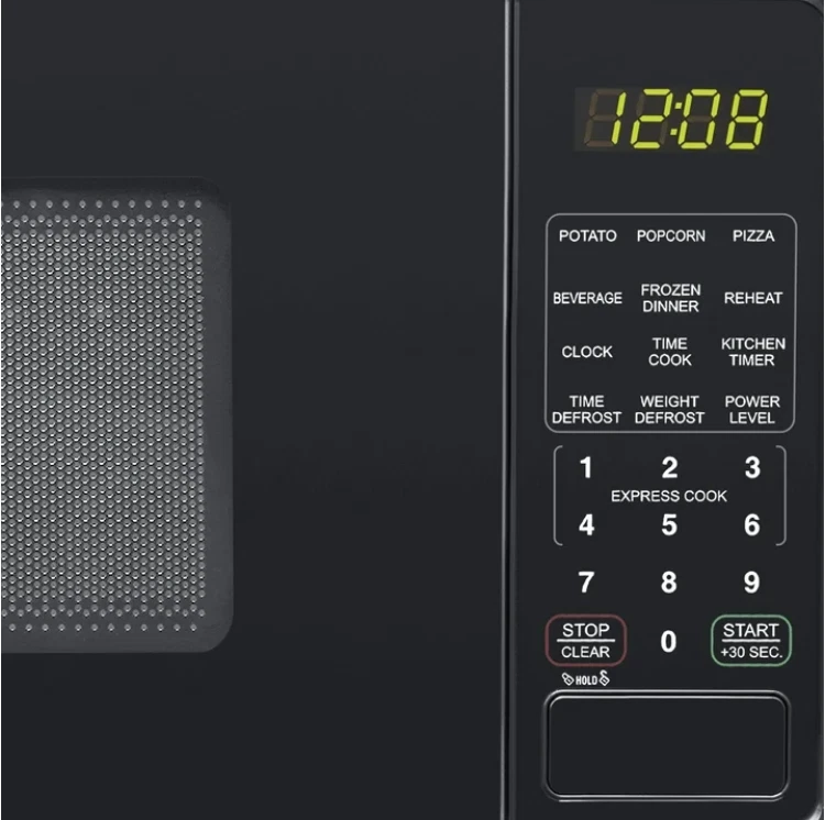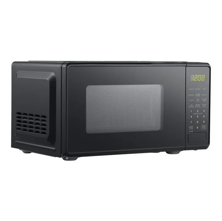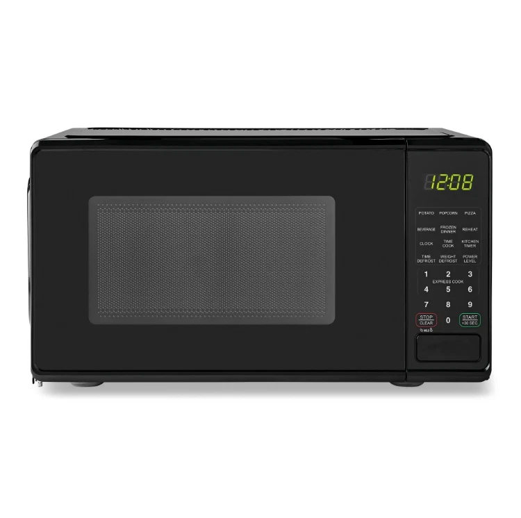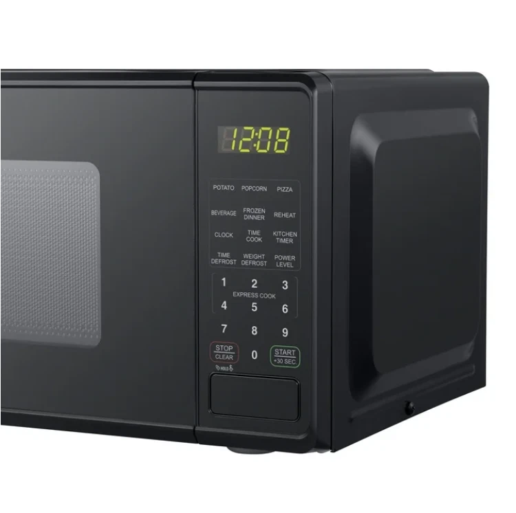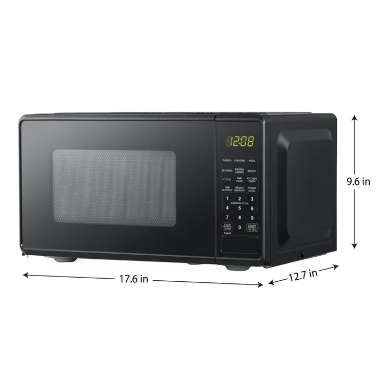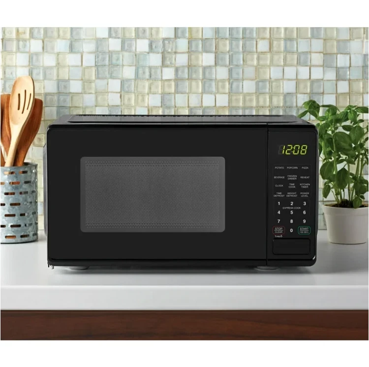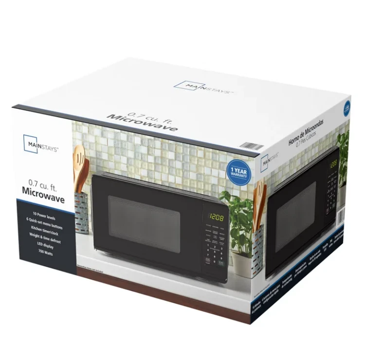 Product details The Mainstays 0.7 Cu ft 700-Watt Compact Countertop Microwave Oven is available in three colors including Black, Red or White. Each color is designed to complement your kitchen, dorm room, office or rec room. Features include LED display, kitchen timer and clock, six convenient quick-set menu buttons, 10 different power levels for cooking a variety of foods, child safety lockout, weight and time defrost and a 30 second one-touch option. The Mainstays 0.7 Cu ft 700-Watt Compact Countertop Microwave Oven is the perfect addition to any home. (Condition: New. Stock Number: MSF0B100072352.) Build your kitchen from the ground up with all the cookware, bakeware, tools, dinnerware and other items you need to create a useful cooking and dining arrangement. The Mainstays kitchen collection focuses on colorful and decorative design applied to simple basics, keeping your daily life vibrant and efficient. This category includes such a wide variety of products that you may want to make a list of the kitchen items you need and use the product filters on the left side of the page to browse more efficiently. This way, you'll get to see all the relevant Mainstays kitchen products in each subcategory to find the best match for your lifestyle. Mainstays 0.7 cu. ft. Countertop Microwave Oven, 700 Watts, Black, New Capacity 0.7 Cu ft 700-Watt Power LED display Kitchen timer & clock 10 Power levels Weight & time defrost 6 Quick-set menu buttons 30 Second one-touch option Child-safe lockout Push-button door opening Condition: New Stock Number: MSF0B100072352