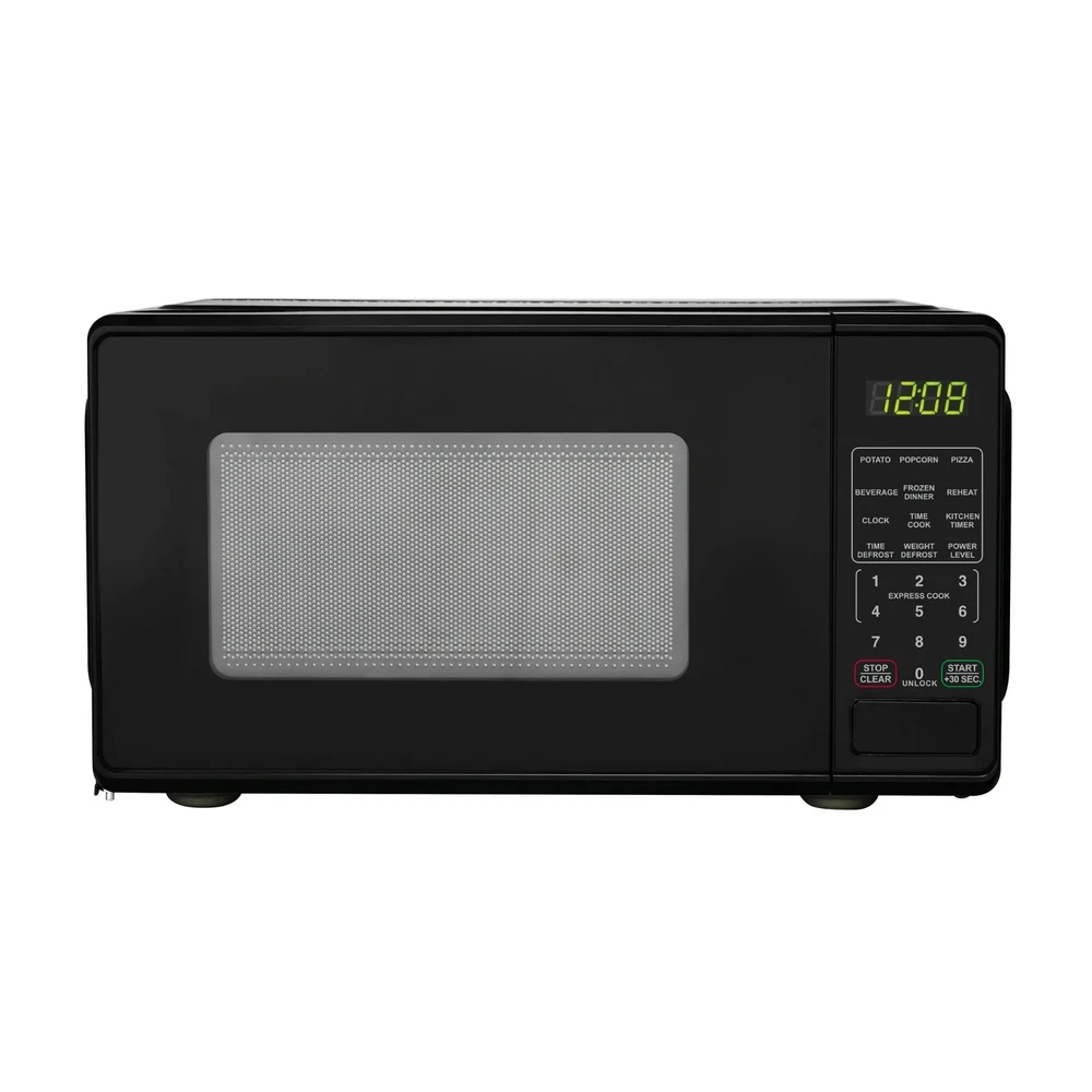Product details Mainstays 0.7 Cu ft 700-Watt Compact Countertop Microwave Oven is available in 3 colors including Black, Red or White. Each color is designed to complement your kitchen, dorm room, office or rec room. Features include LED display, kitchen timer & clock, 10 different power levels for cooking a variety of foods, weight & time defrost, 6 convenient quick-set menu buttons, 30 second one-touch option, child safety lockout and a push-button door. The Mainstays 0.7 Cu ft 700-Watt Compact Countertop Microwave Oven is the perfect addition to any home. Condition: New, Stock Number: MS8436127995-01 Capacity 0.7 Cu ft LED display Kitchen timer & clock Weight & time defrost Child-safe lockout 700-Watt Power Push-button door opening 30 Second one-touch option Condition: New 10 Power levels 6 Quick-set menu buttons Stock Number: MS8436127995-01