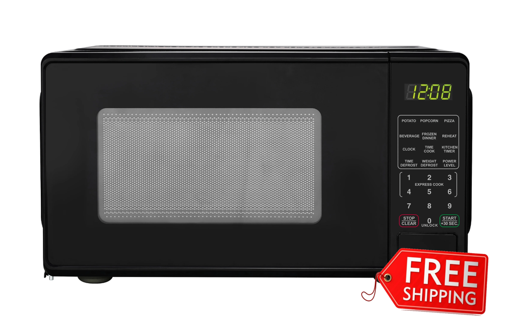 Product details Mainstays 0.7 Cu ft 700-Watt Compact Countertop Microwave Oven is available in 3 colors including Black, Red or White. Each color is designed to complement your kitchen, dorm room, office or rec room. Features include LED display, kitchen timer & clock, 10 different power levels for cooking a variety of foods, weight & time defrost, 6 convenient quick-set menu buttons, 30 second one-touch option, child safety lockout and a push-button door. The Mainstays 0.7 Cu ft 700-Watt Compact Countertop Microwave Oven is the perfect addition to any home. Condition: New, Stock Number: MS8436127995-01 Capacity 0.7 Cu ft LED display Kitchen timer & clock Weight & time defrost Child-safe lockout 700-Watt Power Push-button door opening 30 Second one-touch option Condition: New 10 Power levels 6 Quick-set menu buttons Brand Mainstays Microwave Oven Type Countertop Microwave Ovens Cooking Appliance Functions Defrost Door Opening Side Left Swing Features Timer Oven Feature Turntable Plate Volume Capacity 0.7 cu ft Amps 15 Amps Volts 120 V Watts 700 W Microwave Turntable Diameter 9.65 in Microwave Oven Vent Location Back Oven Cleaning Method Manual-Clean Color Black Front Panel Finish Black Assembled Product Weight 20.06 lb Assembled Product Dimensions (L x W x H) 17.56 x 12.72 x 9.57 Inches
