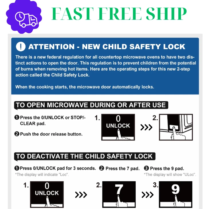 | Features | Safety Lock, Defrost, Digital Display, Timer, Display, Clock, LED Display, Child Safety Lock |