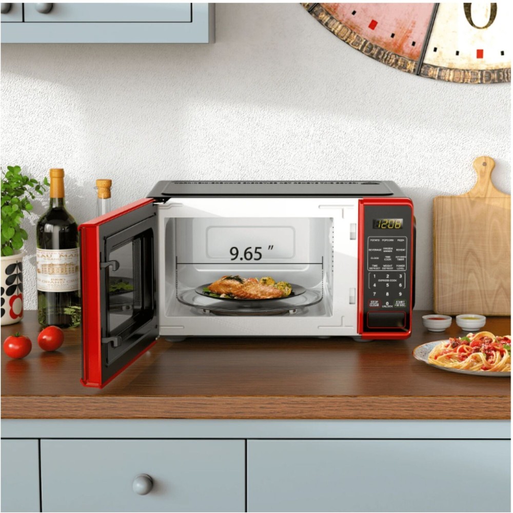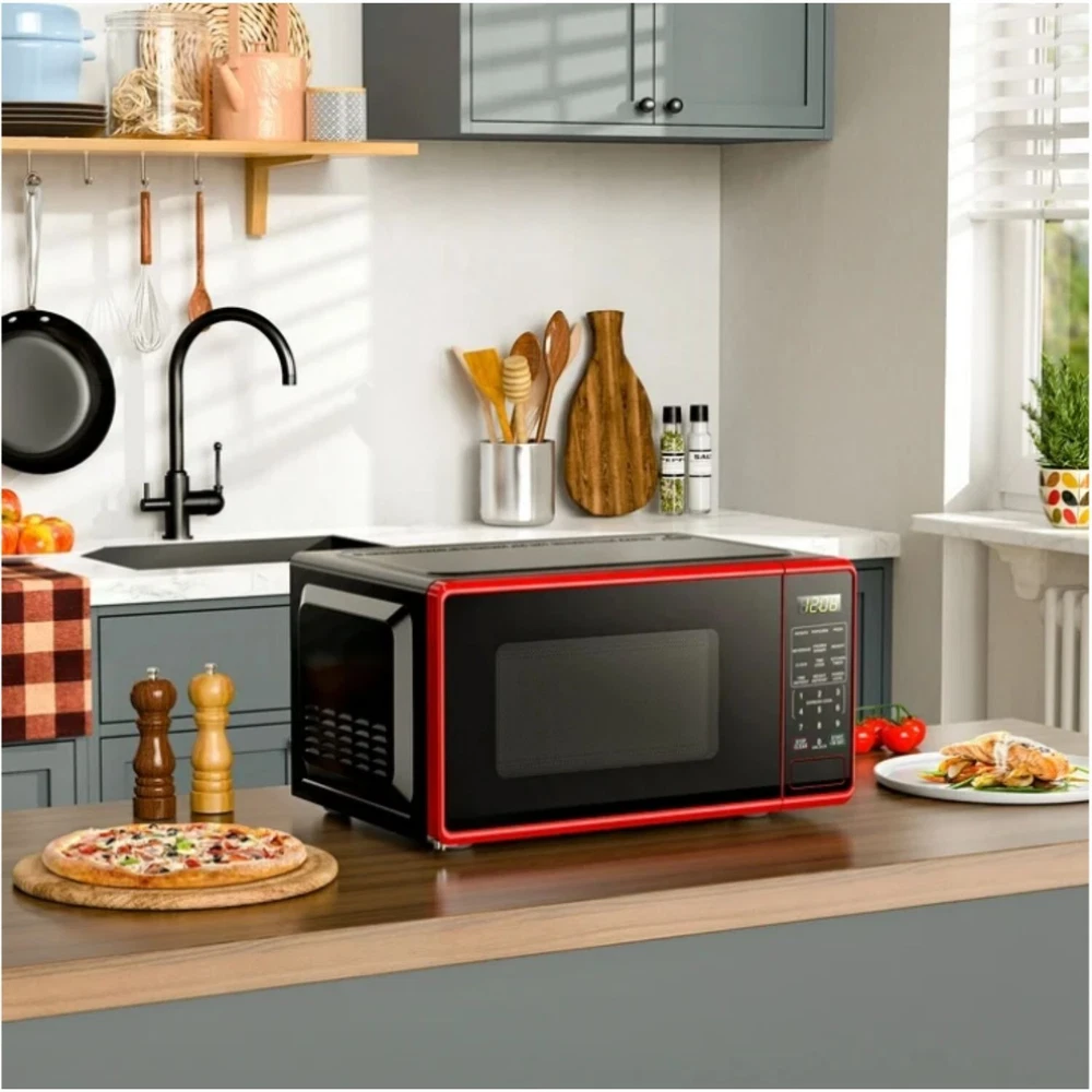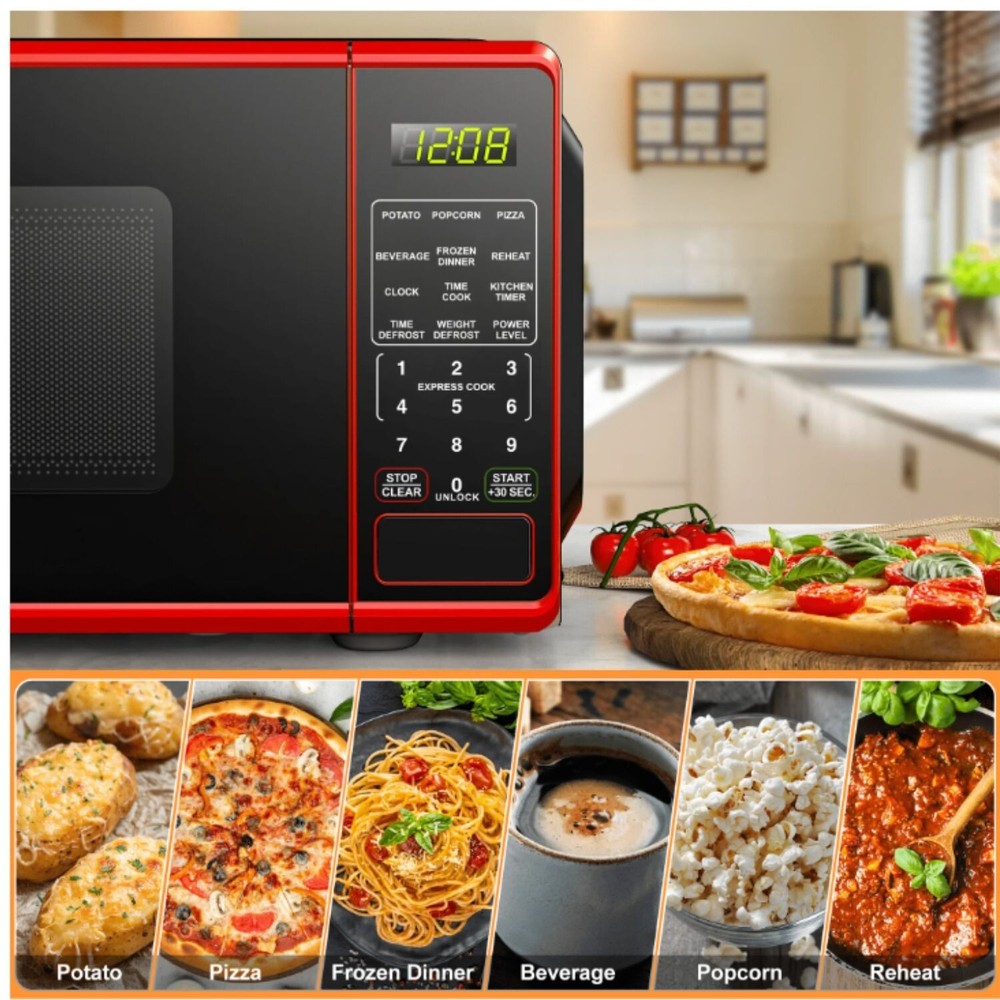 This compact microwave is a game-changer for small spaces! The bright red color adds a fun pop to my kitchen, and the 700W power heats food quickly and evenly. Love the easy-to-use buttons, especially the 30-second shortcut—perfect for reheating coffee. The child lock gives me peace of mind, and the multiple power levels handle everything from popcorn to defrosting. Super affordable yet packed with features—ideal for dorms, offices, or cozy kitchens!