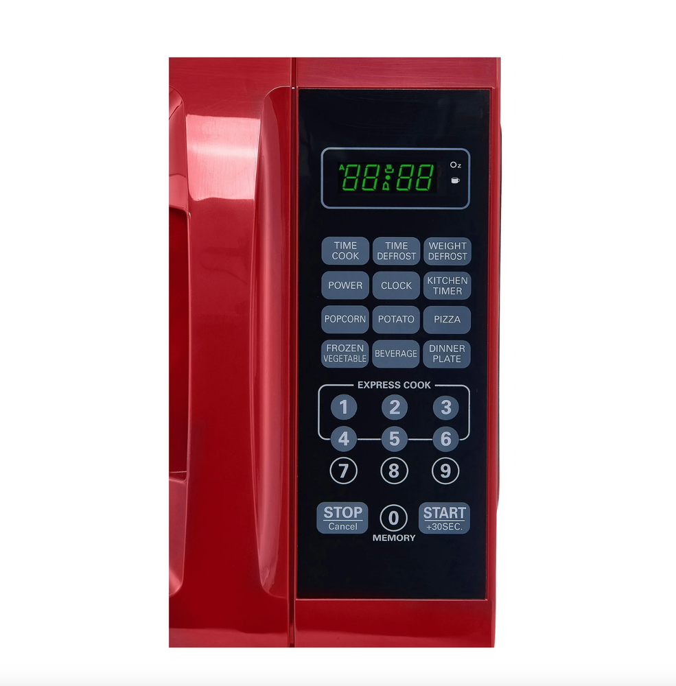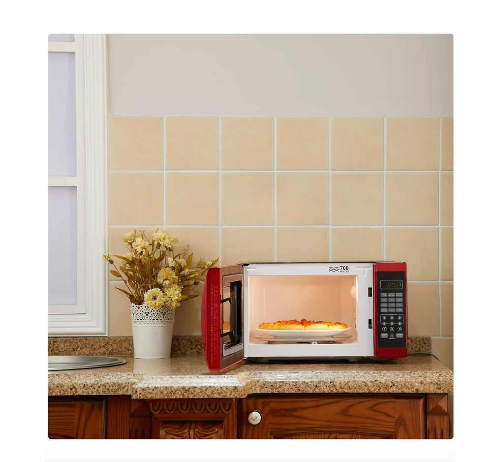 Bring home the Mainstays 0.7 cu ft. 700 Watt Microwave, you'll enjoy easier meal prep than ever before If you're like most, you probably have a lot on your to-do list. This top-of-the-line microwave is the perfect appliance to ensure that even when things in your life get busy, you can still enjoy a hot meal in the comfort of your home. The powerful 700-watt design is equipped with 10 power levels so you can always find the perfect setting, whether you are making popcorn, cooking a microwave meal, heating up leftovers, or defrosting meat for tonight's dinner. The polished red exterior is sure to add a pop of color to your kitchen space while maintaining a modern and cohesive aesthetic. Whether you are a kitchen pro or cook just occasionally, the Mainstays 0.7 cu. ft. 700 Watt Microwave is essential you need to make meal prep easier and life in the kitchen go more smoothly. Mainstays 0.7 cu ft Countertop Microwave Oven in Red Compact 0.7 cu. ft. capacity ideal for small kitchens or limited counter space Features 6 quick-start one-touch options for easy and efficient meal preparation Includes a convenient +30 seconds option for quick heating adjustments Weight and time defrost feature simplifies thawing of frozen foods Rotating glass turntable ensures even cooking and heating for consistent results