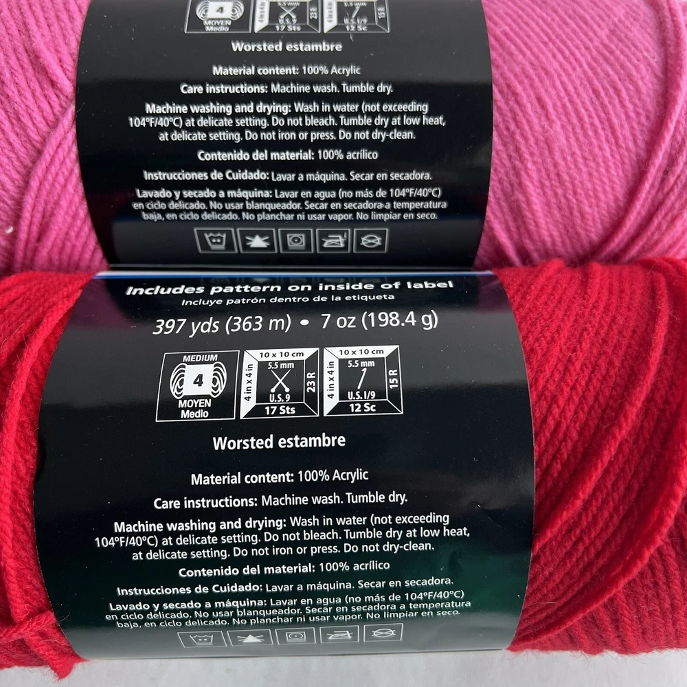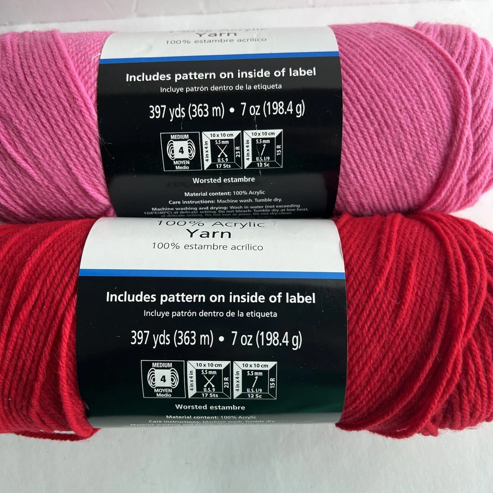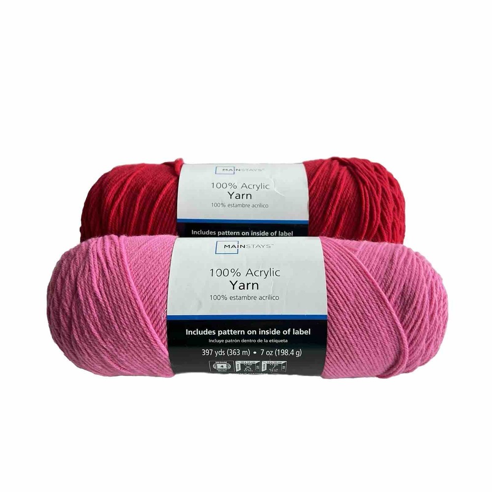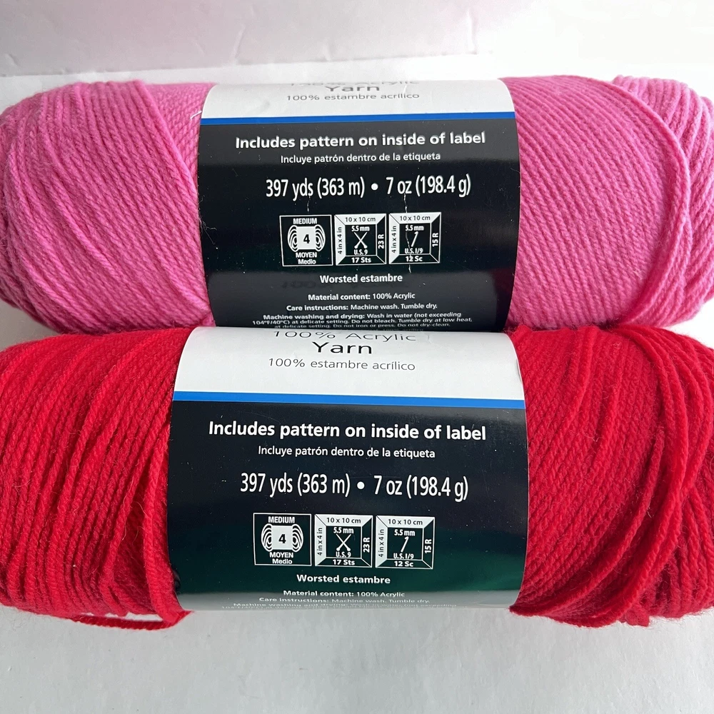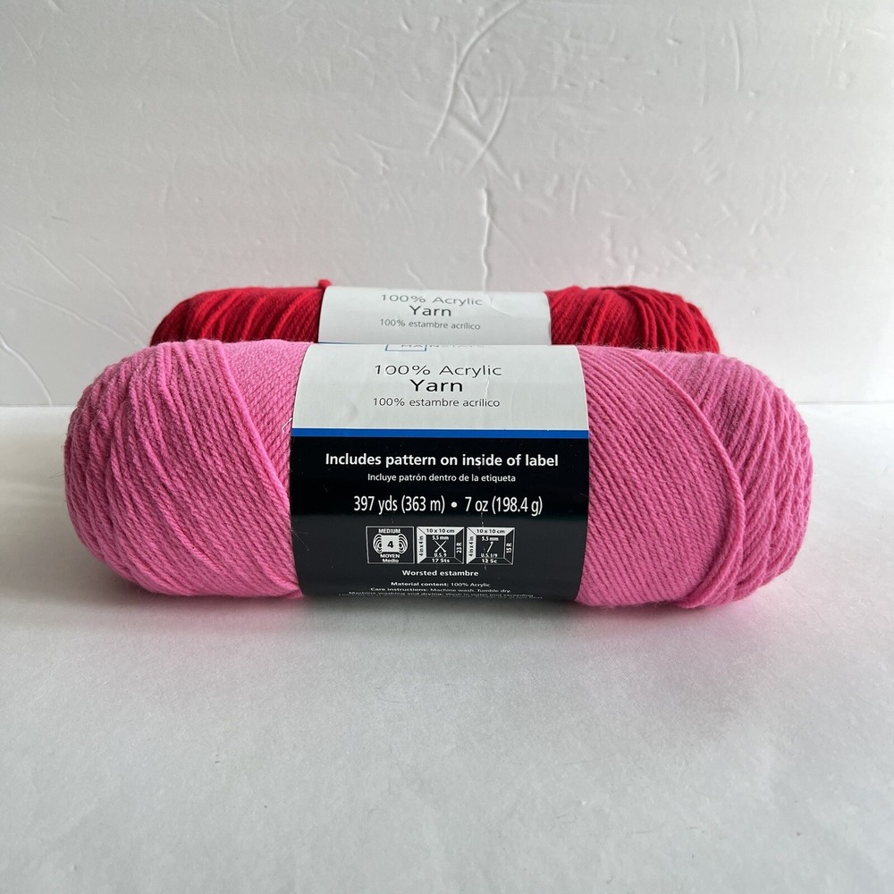 Mainstays 100% Acrylic Yarn 1 Red 1 Pink 4 Ply Worsted 7oz Set Of 2 Skeins Lot New Condition. Please SEE pictures for details. Thank you