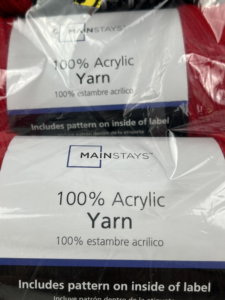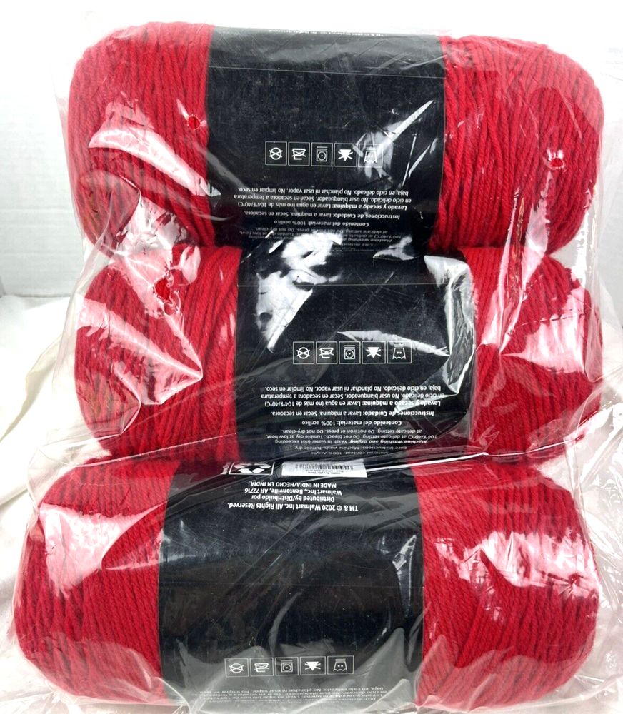 Mainstays 100% Acrylic Yarn Red Lot of 3 397 Yards Each New Perfect for Crocheting or Knitting
