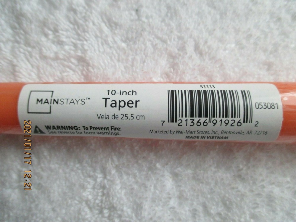 Mainstays 10-10" Tapers Orange New in Box . Stored in my smoke free and pet free home. If you do not live on or near the west coast, shipping could be less with your zip if you send me your zip before...