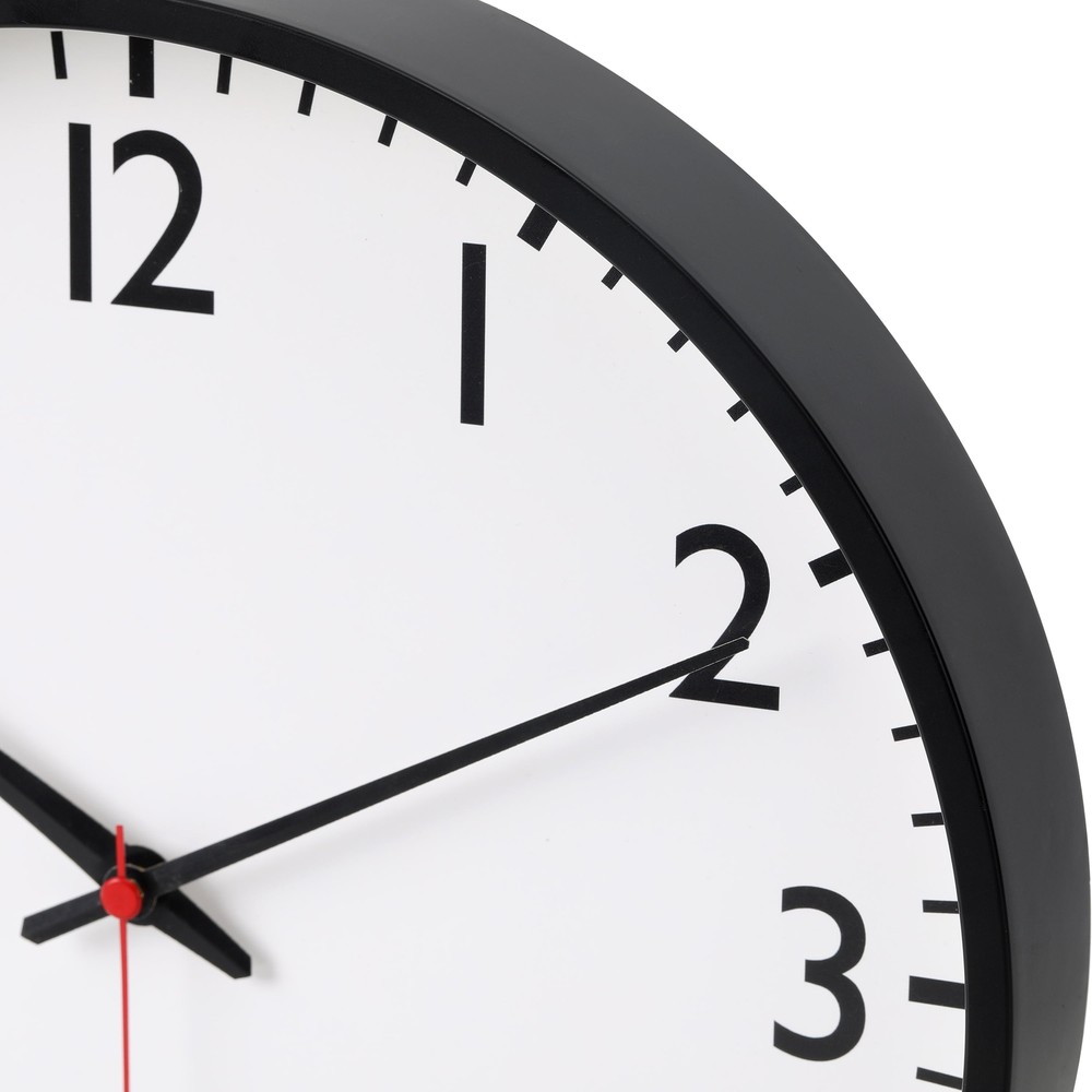 The 11.5" diameter classic schoolhouse style wall clock is more than just a timepiece. It’s an accent piece that never goes out of style. The classic black frame, accentuated by the white dial, creates a striking contrast that draws the eye. The iconic red second hand adds detail and classic interest to the design. Accurate timekeeping is powered by a quality quartz movement. The nostalgic vintage vibe of this clock, combined with its solid design and classic numbers font, makes it an exquisite piece that's perfect for any space. Whether it's your kitchen, living room, office, or even a classroom, this clock brings a touch of sophisticated charm to the atmosphere. Mainstays 11.5” Quartz Black & White Schoolhouse Wall Clock with Red Second Hand Classic Schoolhouse Style Wall Clock 11.5" diameter x 1.5" Requires 1 "AA" Battery to Operate (Battery not Included) Glass Lens Red Metal Second Hand