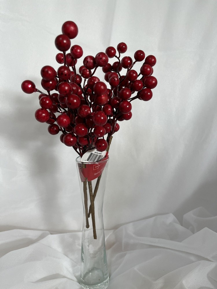 ****** Vases are for display purposes only and are not included. ****** Mainstays 12” Christmas Red Berries Pick for Floral Bouquets, Wreaths, Centerpieces, Crafts, etc