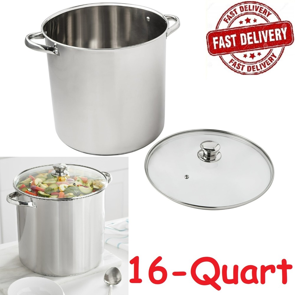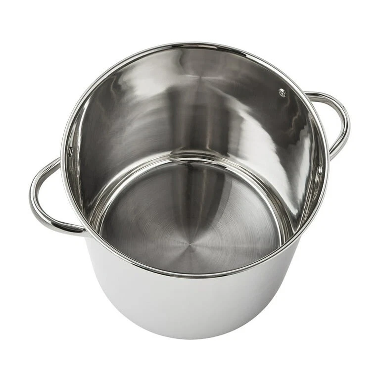 Product details - Prepare amazing sauces, soups, pastas, and more with the sizable Mainstays Stainless Steel 16-Quart Stock Pot with Glass Lid. - This extra-large stock pot measures 11.02”L x 11.02”W x 10.63”H and is perfect for cooking family meals for any occasion. - Designed with stylish stainless steel and glass, it’s sure to coordinate with your existing cookware. - This sturdy stock pot features stay-cool handles and a helpful, transparent glass lid, along with durable, stainless steel construction. - Ideal for helping you feed your family and friends at get-togethers, backyard barbecues, celebrations, and other special events, the Mainstays Stainless Steel 16-Quart Stock Pot with Glass Lid is a must-have cookware item in any kitchen. Sizable stock pot is perfect for preparing amazing sauces, soups, pastas, and more Stylishly designed to coordinate with your existing cookware Ideal for cooking for large gatherings as well as smaller groups Features stay-cool handles, transparent glass lid, and stainless steel construction Induction Safe Materials: Stainless steel, glass Dimensions: 11.02”L x 11.02”W x 10.63”H Weight: 4.84 lbs Dishwasher safe. Wash before first use. Do not boil dry. Do not use cookware on high heat or high flames; use medium or lower heat settings. Match base of pan to stove burner size. High heat, high flames, or boiling dry can cause cookware to turn black or red. Handles and knobs may warm during heating. It is recommended to use oven mitts or pot holders when handling. Specifications Induction-Safe Y Features Induction Friendly Brand Mainstays Material Stainless Steel Size 16 qt Cleaning, Care & Maintenance Wash Before First use. Do not boil dry. Do not use cookware on high heat/flames. Use medium or lower heat settings. Match base of pan to stove burner size. High heat, boiling dry, or high flames can cause cookware to turn black/red, Use gloves when hot. Handles & knobs may warm during heating. It is recommended to use oven mitts or pot holders. Assembled Product Dimensions (L x W x H) 14.06 x 11.42 x 11.30 Inches