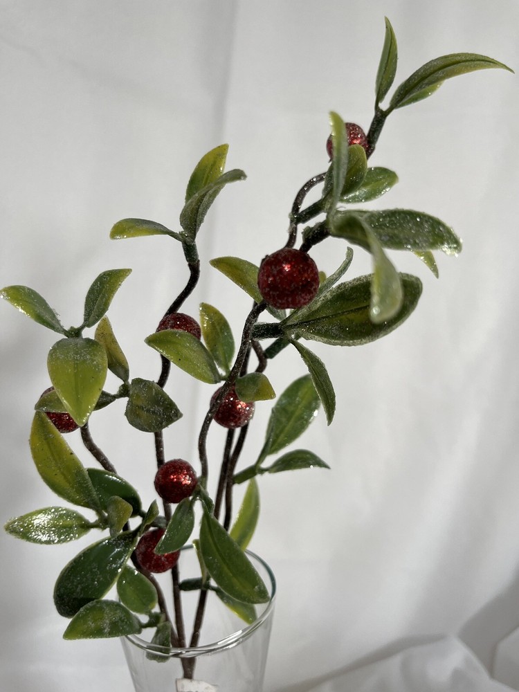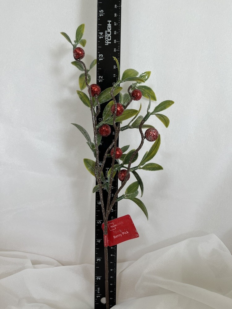 ****** Vases are for display purposes only and are not included. ****** Mainstays 14” Christmas Shimmer Green Leafy Pick With Red Berries great for Floral bouquets, Centerpieces, Wreaths, And Crafts...