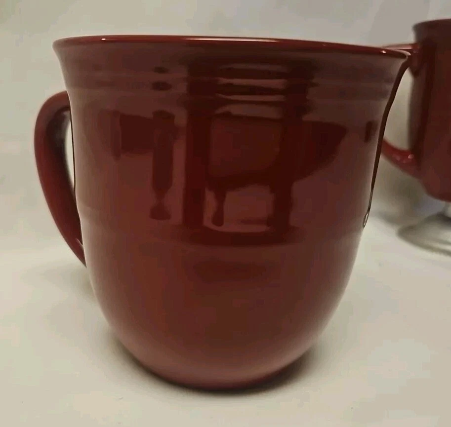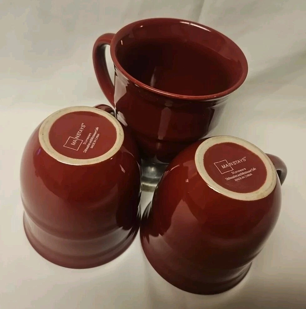 This is an estate find and 1 cup has a chip shown in the pictures. Three-piece set of Mainstays 14oz Red Sedona Stoneware Coffee Mugs. Solid color in Red Sedona, with a contemporary style. Features a Round shape and can be used for all occasions. Dishwasher and microwave safe. Suitable for a service of 3, the set includes three coffee mugs perfect for family and friends. A replacement option in the Rainforest theme.