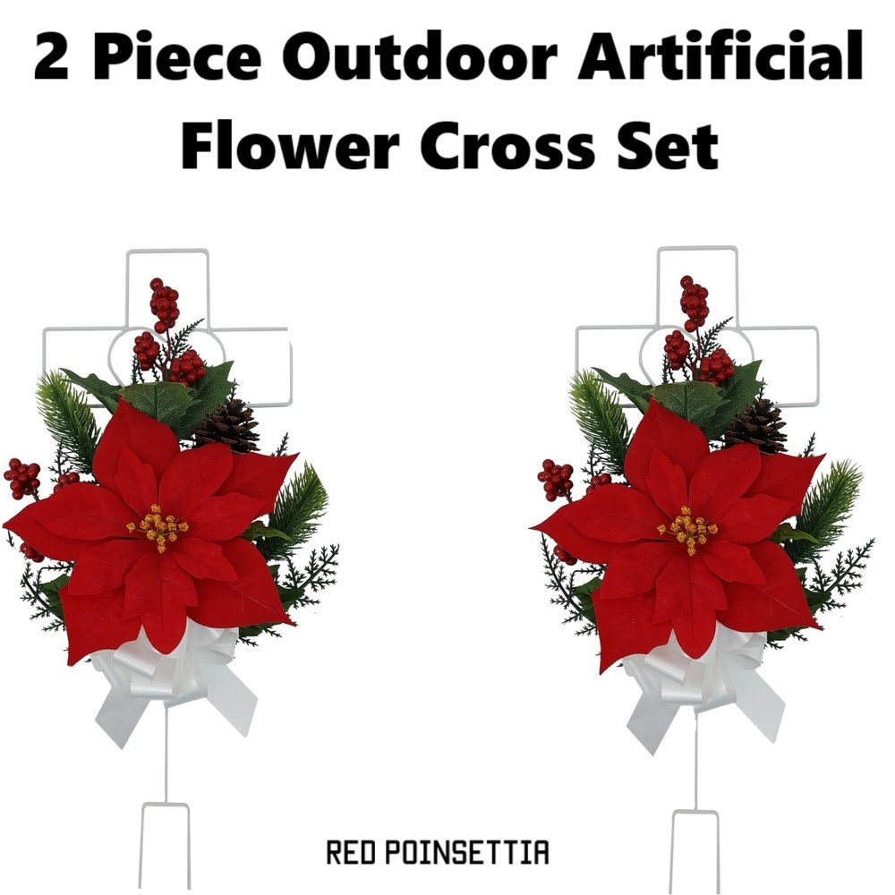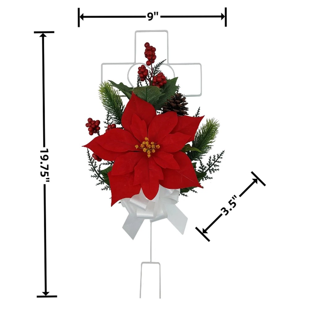 Mainstays 19.75 in Outdoor Artificial Floral Wire Cross, Poinsettia, Red Color. Flowers are one of the best ways to express our condolences when words fail us. This Mainstays Artificial Floral Wire cross features a big Poinsettia Flower, accented with Holly Berries, Pine needle and Pine Cone. The arrangement is bound on a wire rack with a While color ribbon bow. This whole piece is with 19.75" in height and designed with a wire edge end for staking into the ground. This artificial flower cross is with a wire stand for staking into the ground. WE GIVE SO OTHERS CAN HAVE High Quality We understand that you have many options, and places to purchase your items. But when you purchase from Reflections of Trinity, you get so much more than a great, quality product ~ you significantly impact the lives of those most in need. Reflections of Trinity is a 501(c)3 non profit dedicated to serving those in crisis with food, clothing and basic needs. Our food pantry opens every Saturday and over 70% of those we serve are over 65 or under 18 years old. We are very community oriented and have facilitated several monthly opportunities for people to engage in meaningful service projects since 2003. Please call us or email if we did not meet your expectations and we will make things right. Note that we do not have control over the delivery time with USPS or UPS. All packages will have delivery confirmation. If you have any questions about this item, please ask before bidding.