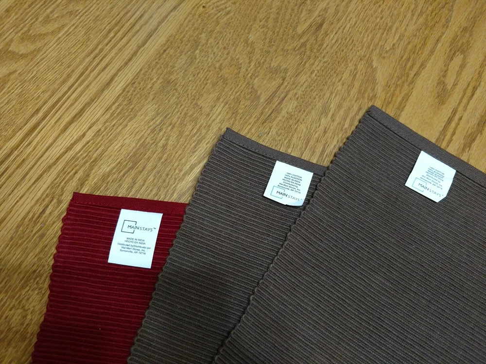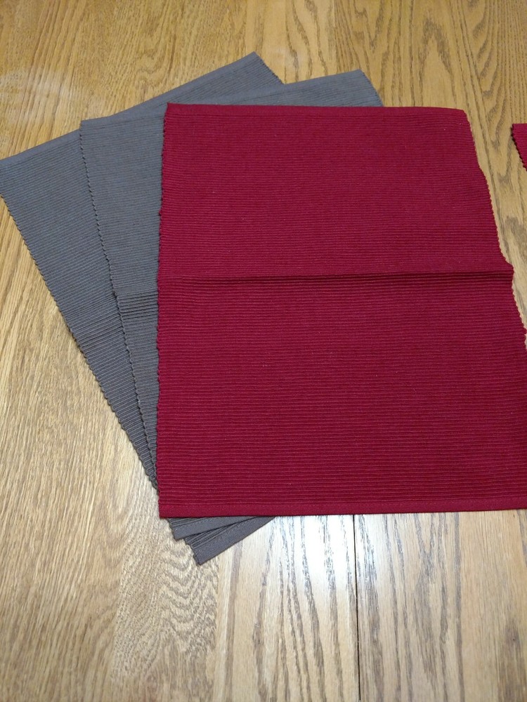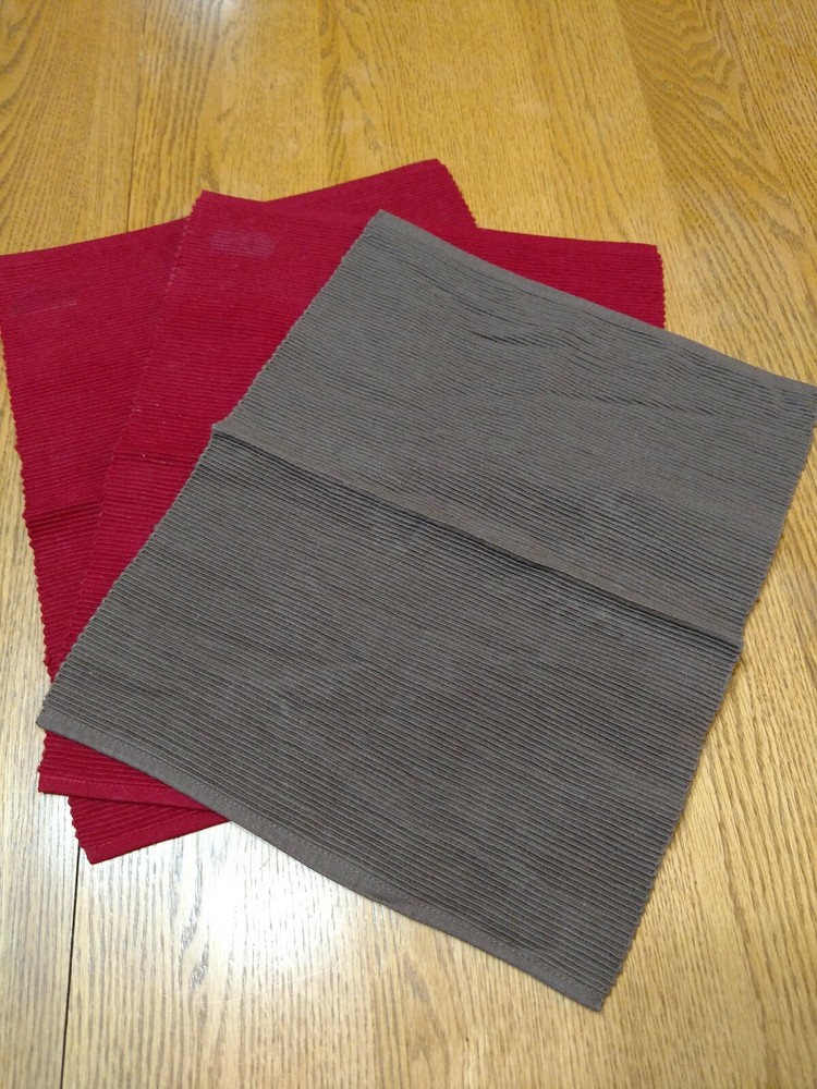 Mainstays - (3) Brown & (3) Dark Red Placemats- Part Used, Part New - 18" x 14". Condition is Used. Shipped with USPS Priority Mail.