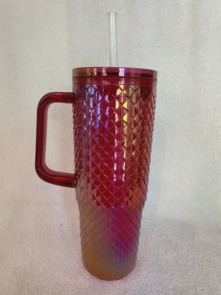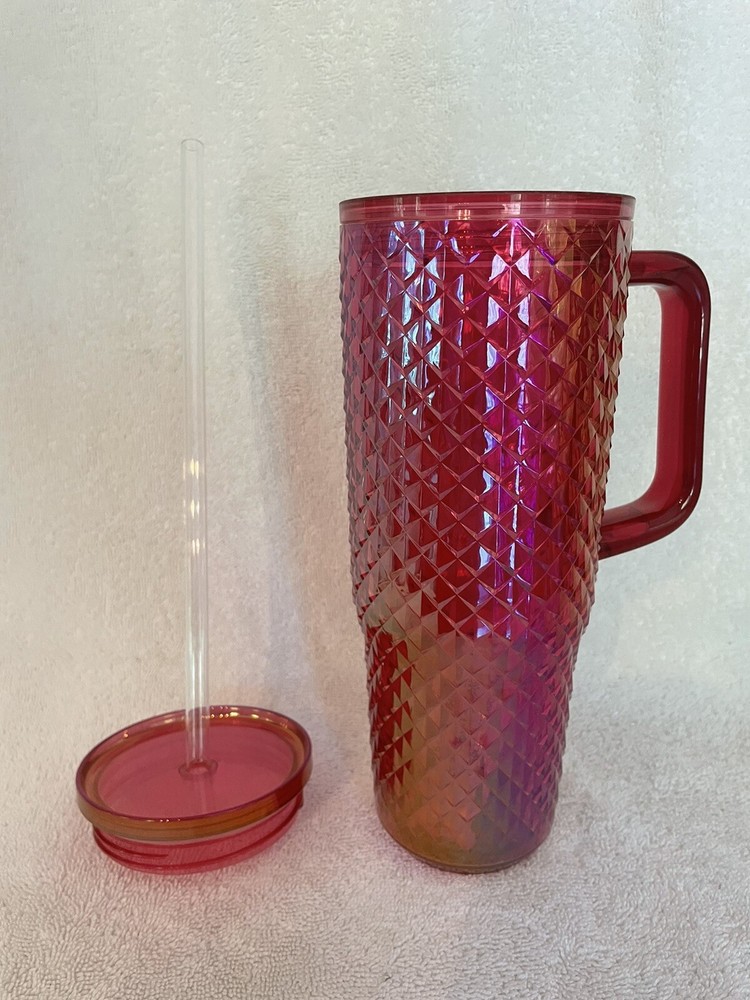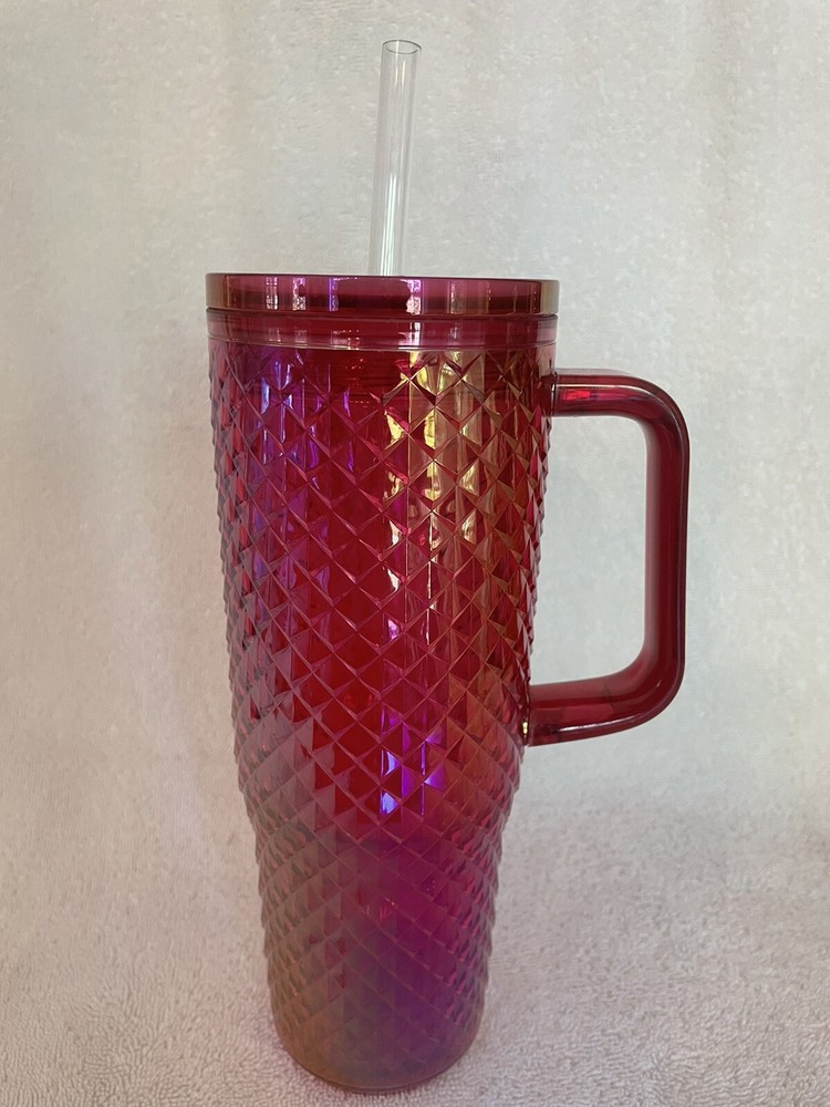 Mainstays 30oz Iridescent Red, Insulated Textured Tumbler with Straw and Handle. Condition is New. Shipped with USPS Ground Advantage.