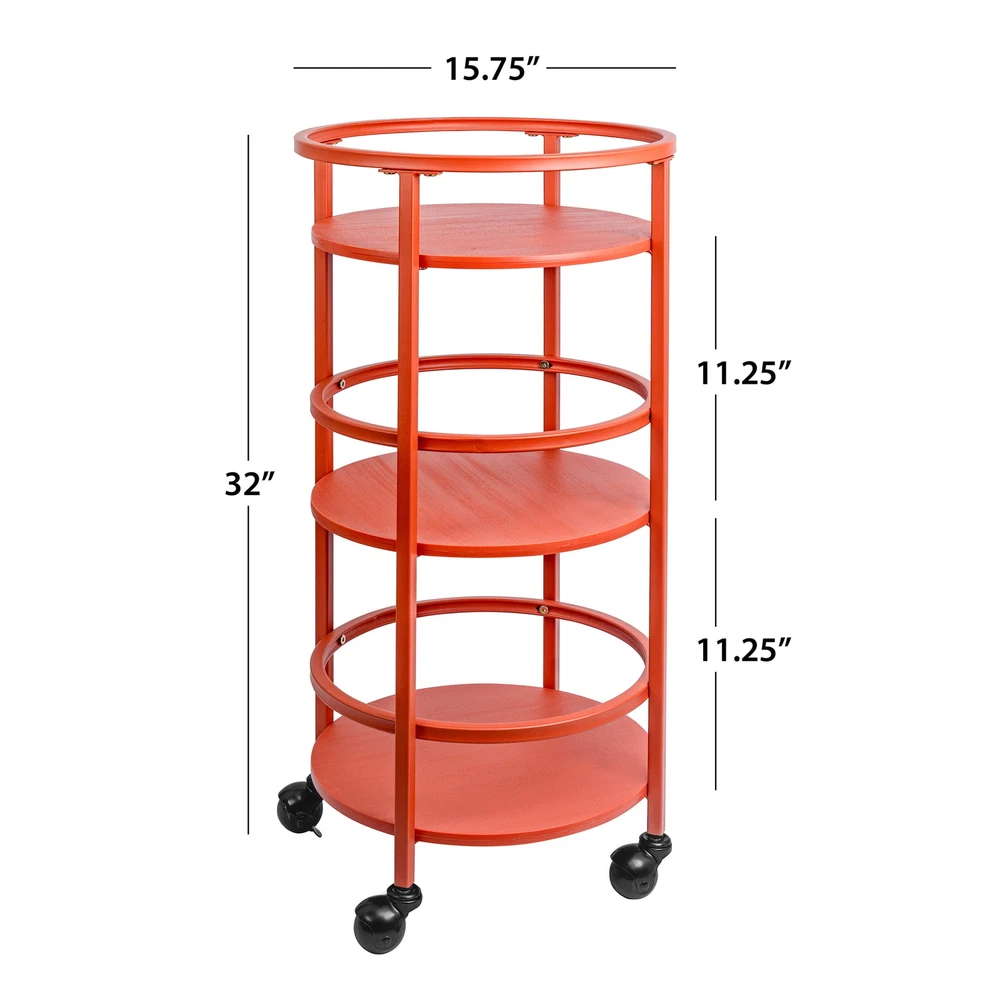 The Mainstays 32" 3-tier Round Kitchen Storage Cart is the perfect storage solution you've been looking for. Whether you need extra space for kitchen snacks, office craft supplies, bathroom toiletries, or even as a trendy bar cart, this item has you covered. The cart features three round shelves with guardrails to keep products in place. Four lockable casters allow for the cart to be displayed as an accent piece or conveniently be moved away and stored in a small space. Available in 3 colors. On Dec 1, 2024 at 23:49:58 PST, seller added the following information: