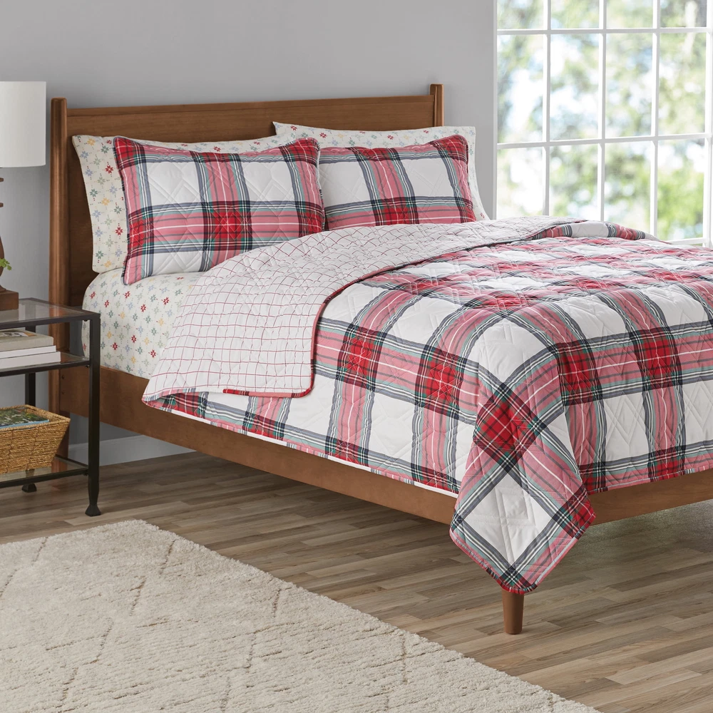 Get cozy with our Mainstays 3-piece Adult Quilt Set crafted from ultra-soft, durable microfiber polyester fabric. Designed with breathability in mind, our lightweight quilt set provides year-round comfort with plush comfort perfect for warm summer and cold winter nights. This set is durable and machine washable, making it long lasting and easy to care for. Choose from a variety of prints and sizes to complete any bedroom in your home! On Nov 12, 2024 at 18:58:52 PST, seller added the following information: