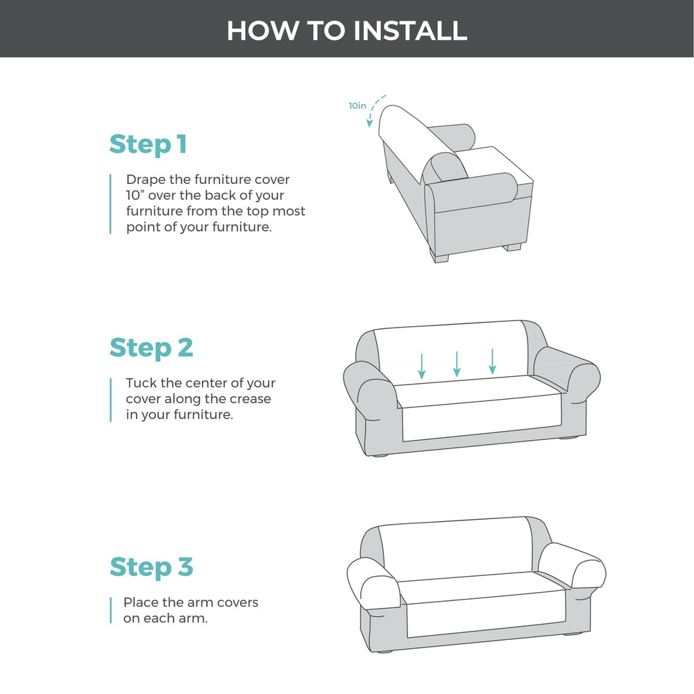 Protect your furniture and get two looks in one with this quilted Mainstays Reversible Microfiber Fabric Pet/Furniture Sofa Cover. This is an ideal addition to your home if you have dogs or cats because it shields your pieces against their hair. Enjoy kids' playtime without thinking of messes with this quality microfiber, quilted and reversible fabric furniture cover. This Mainstays sofa cover set includes three pieces: one base cover and two arm covers. The two separate arm covers are designed not to fall inwards when you sit down. The reversible sofa cover has a darker side and a lighter side, and it is also made to work with most arm shapes and sizes including t-cushions. The set is machine washable so you can toss it into the laundry when it needs freshening up. The Mainstays Reversible Microfiber Fabric Pet/Furniture Sofa Cover has separate arm covers for a better fit, and it's easy to put on and take off. Mainstays Reversible Microfiber Fabric Pet/Furniture Sofa Cover: Soft microfiber fabric. Quilted 3-piece cover. Mainstays sofa cover works well with T-cushions. Machine washable. Sofa size fits up to 96" wide. Love seat size fits up to 73" wide. Easy to put on and take off. Separate arm covers make for a better fit. Not recommended for leather furniture. Please see our nonslip furniture covers for leather furniture. On Apr 28, 2025 at 23:58:56 PDT, seller added the following information: