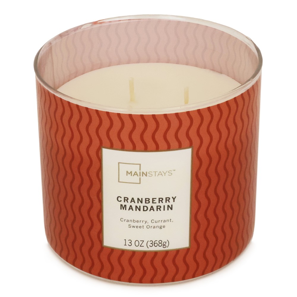 Mainstays 3-Wick Textured Wrap Cranberry Mandarin Candle, 13-Ounce 3 wick candle Decorative Wrap 13 ounce candle