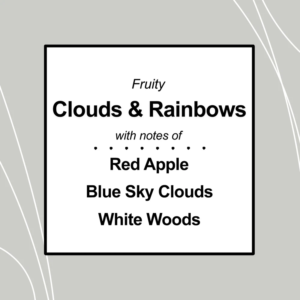 Mainstays 3-Wick Wrapped Clouds & Rainbows Scented Candle, 14 oz Consistent and smooth burn 3-wick with decorative wrap and attractive metal lid Highly fragranced candle Fragrance notes of red apple, blue sky clouds, and white woods Introduce a soothing aroma into your living space with the Mainstays 3-Wick Wrapped Clouds & Rainbows Scented Candle. Mainstays scented candles are highly fragranced and provide a clean and even burn that will fill your home with beautiful and enticing seasonal aromas. Place this candle in the kitchen, living room or dining room where you can enjoy it when entertaining guests or anytime you want to relax. Trim the wick periodically to promote even burning. Mainstays offers a wide selection of candle scents to explore and enjoy. Shop all of our Mainstays scents online and in-store. Treat yourself to the enticing scent of the Mainstays 3-Wick Wrapped Clouds & Rainbows Scented Candle.