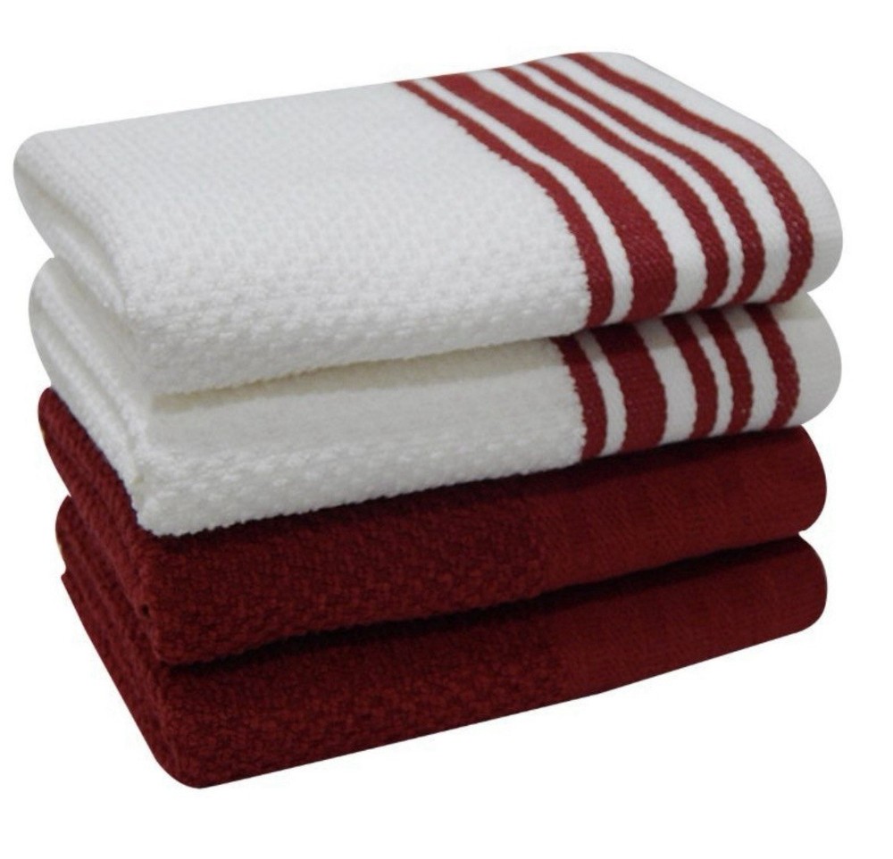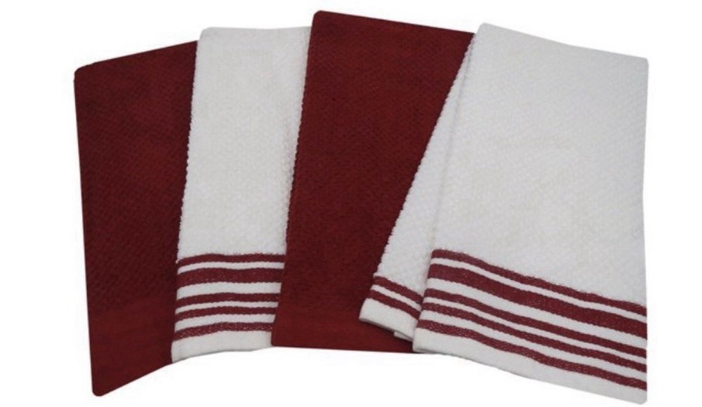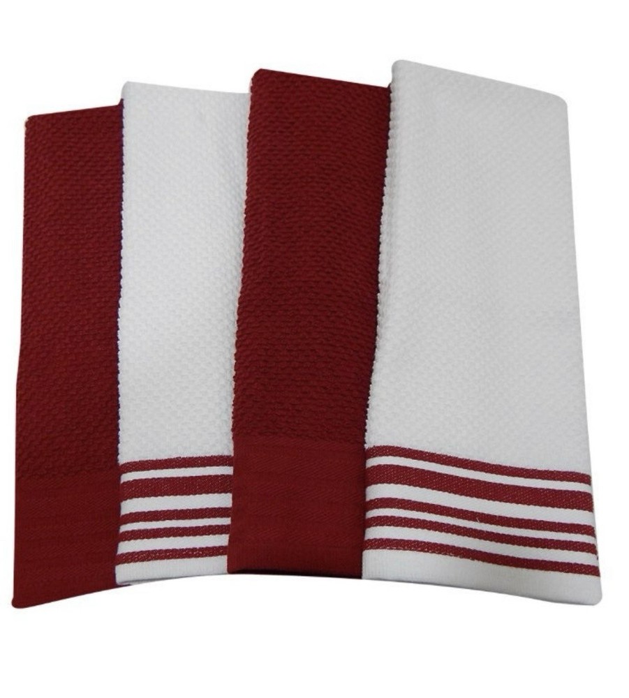 The Mainstays 4-Pack 16”x26” Woven Kitchen Towel Set is a set of four red kitchen towels made from 100% cotton. The towels are woven, adding a textured and stylish touch to your kitchen decor. With the Kitchen brand behind them, you can trust in the quality and durability of these towels for all your cooking and cleaning needs. Personalization is not available, but the classic red color and simple design make them versatile for any kitchen setting.