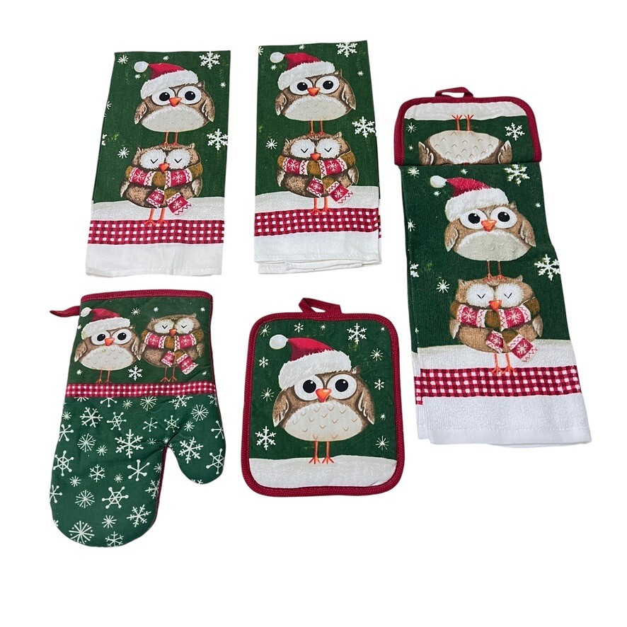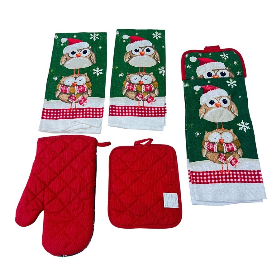 Mainstays 5-pc Green Red Owl Kitchen Towel Set Potholder Oven Mitt Unused New without tags - never used - see photos Please view all photos for details as they are part of the description Handling Time – 3-5 days This sale does not include any guarantees from the manufacturer Smoke Free/Pet Free Home I pack items carefully for shipping In the unlikely event that an item arrives damaged, please contact me immediately DO NOT discard the box or any of the packing materials Thanks so much for shopping and have a Blessed Day!