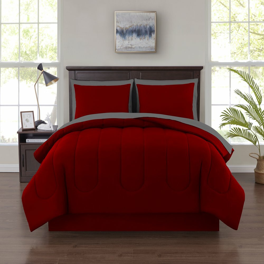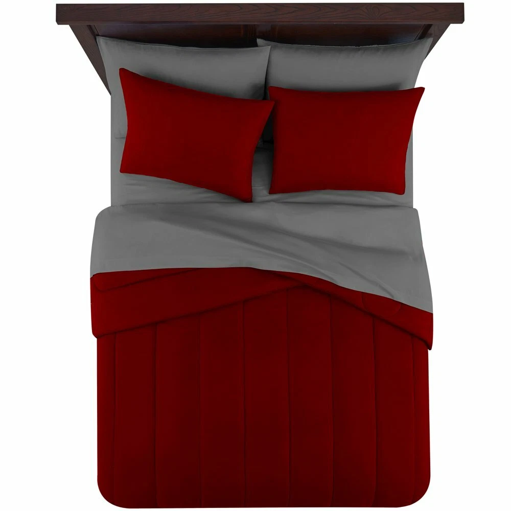 Mainstays 6 Piece Solid Bed in a Bag Bedding Comforter Set, Twin, Red Give your space a solid grounded look with Mainstays Solid Bed in a Bag. Available in Red, Gray and Black this bedding set gives you options to update your room in dark or bright colorways. The Red bedding set features a dark gray neutral sheet set that help tone down the look of the deep red comforter for a perfectly contrasted look. The Navy bedding set features a light blue solid sheet set that offers a hint of light colors to your dark bedding set. The Black bedding set features a dark gray neutral sheet set providing a dark and neutral color combination. Complete the look of your Mainstays Solid Bed in a Bag with the bed skirt that perfectly matches the red, navy or black toned comforter. Each Mainstays Solid Bed in a Bag includes a comforter, sheet set, pillow case(s), sham(s) and a bed skirt. Available in twin, full, queen and king sizes so you have plenty of options to make this bedding set work in you home. Made with 100% polyester microfiber for softness and comfort that will have you sleeping soundly all-night long. Mainstays Solid Bed in a Bag is easily integrated into your already decorated space. Update your bedroom today with a solid grounded look with Mainstays Solid Bed in a Bag. Mainstays Solid Bed in a Bag Coordinated Bedding Available in various sizes and colors Available in Red, Navy, Black and Mint 100% Polyester Machine Washable Twin Size includes: 1 twin comforter (64”x86”), 1 fitted sheet (39”x75”+14”), 1 flat sheet (65”x94”), 1 standard pillowcase (20”x30”), 1 standard pillow sham (20”x26”) and 1 bed skirt (39”x75”x14”) Full Size includes: 1 full comforter (76”x86”), 1 fitted sheet (54”x75”x14”), 1 flat sheet (80”x94”), 2 standard pillowcases (20”x30”), 2 standard pillow shams (20”x26”) and 1 bed skirt (54”x75”+14”) Queen Size includes: 1 queen comforter (86”x86”), 1 fitted sheet (60”x80”+14”), 1 flat sheet (86”x100”), 2 standard pillowcases (20”x30”), 2 standard pillow shams (20”x26”) and 1 bed skirt (60”x80”+14”) King Size includes: 1 king comforter (102”x86”), 1 fitted sheet (78”x80”+14”), 1 flat sheet (104”x100”), 2 king pillowcases (20”x40”), 2 king pillow shams (20”x36”) and 1 bed skirt (78”x80”+14”) Free shipping