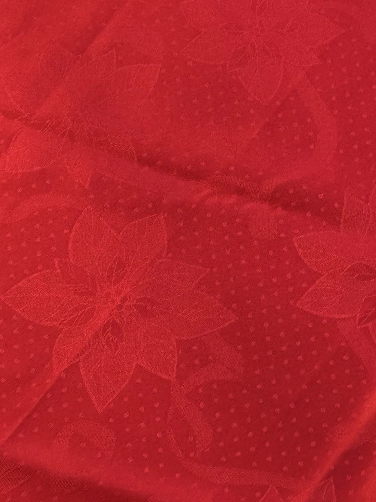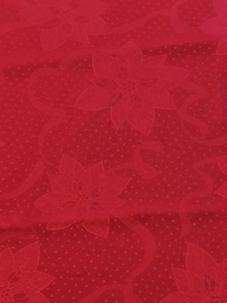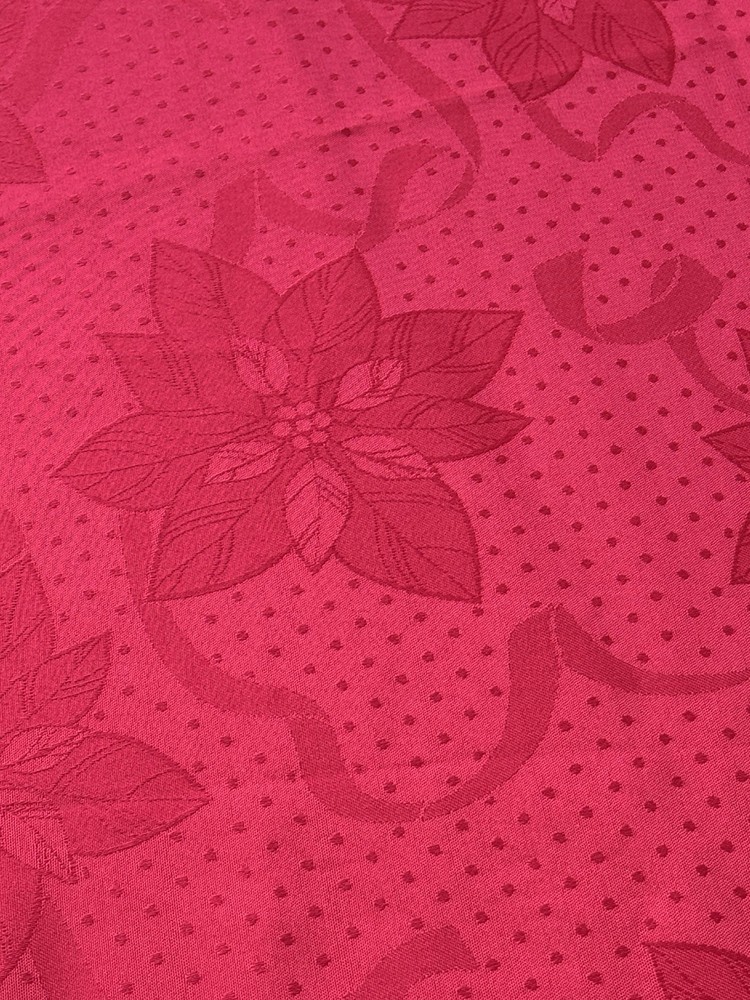 Mainstays 70" Round Tablecloth Red with poinsettias design Polyester Hemmed edges...