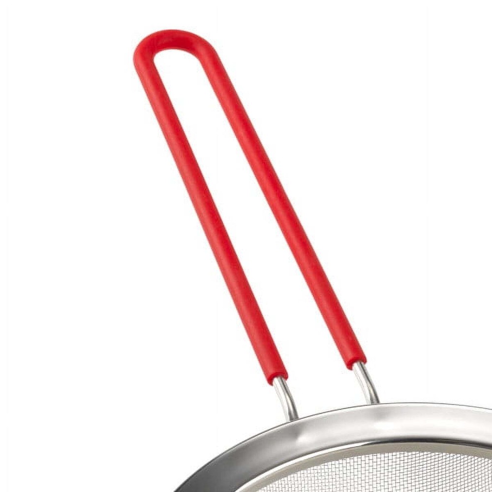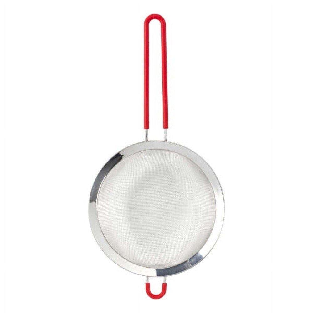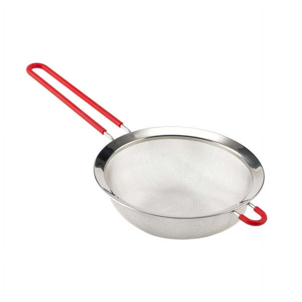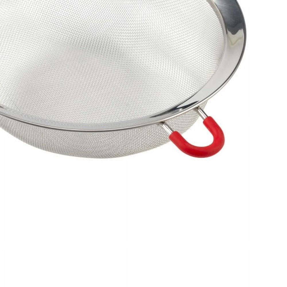 Complete your collection of everyday kitchen gadgets with the Mainstays Fine Mesh Strainer Basket. Designed with home chefs in mind, this handheld strainer with an 8-inch diameter straining basket is perfect for washing fruits and vegetables, rinsing beans and other canned goods, dusting baked goods with powdered sugar, separating seeds, and more. It efficiently catches small morsels while allowing liquids through. With a lightweight design and secure hook along the wire frame, this strainer offers busy cooks extended hands-free straining with the ability to hang it on the rims of bowls and cookware. The ergonomic nonslip handle offers a firm and comfortable hold. Constructed with durable stainless steel, the strainer is built to last and is top-rack dishwasher safe for a quick and easy clean up after use. Build your kitchen from the ground up with all the cookware, bakeware, tools, dinnerware and other items you need to create a useful cooking and dining arrangement. The Mainstays kitchen collection focuses on colorful and decorative design applied to simple basics, keeping your daily life vibrant and efficient. Kitchen strainer with an 8-in. diameter mesh basket. Ergonomic non-slip handle for a firm and comfortable grip. Catches food morsels, strains liquids, and sifts or dust-drys ingredients. Hook along the wire frame allows for hands-free straining. Ideal for straining pasta, washing produce, and rinsing other ingredients. Stainless steel construction provides long-lasting durability. Top rack dishwasher safe for a quick and easy clean up after use.