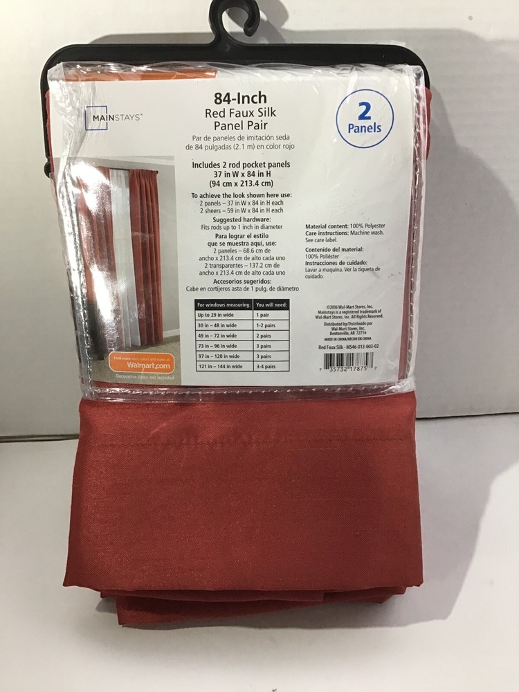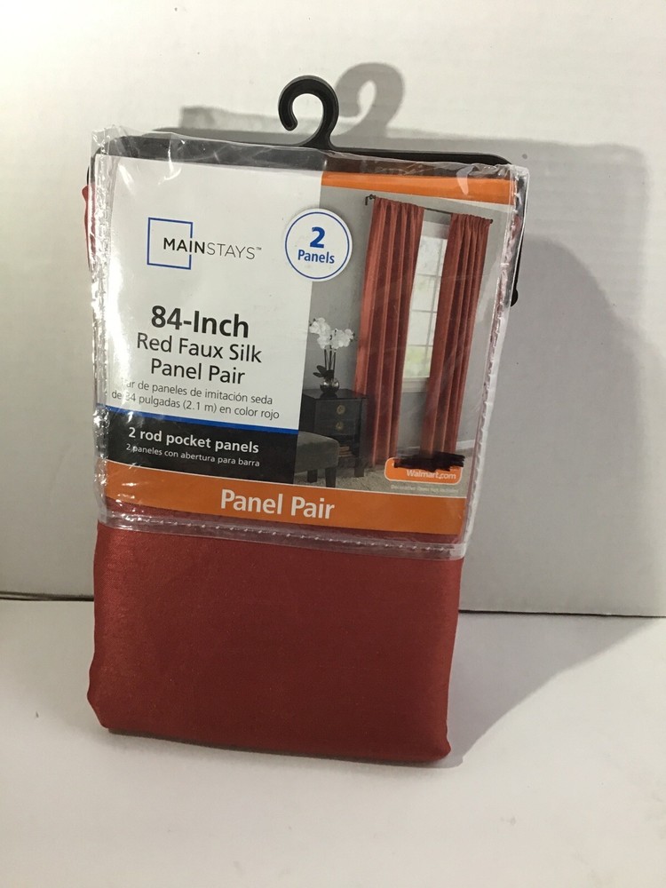 Mainstays 84 inch Red Faux Silk Panel Pair Condition is New. Shipped with USPS Priority Mail. Shelf A2