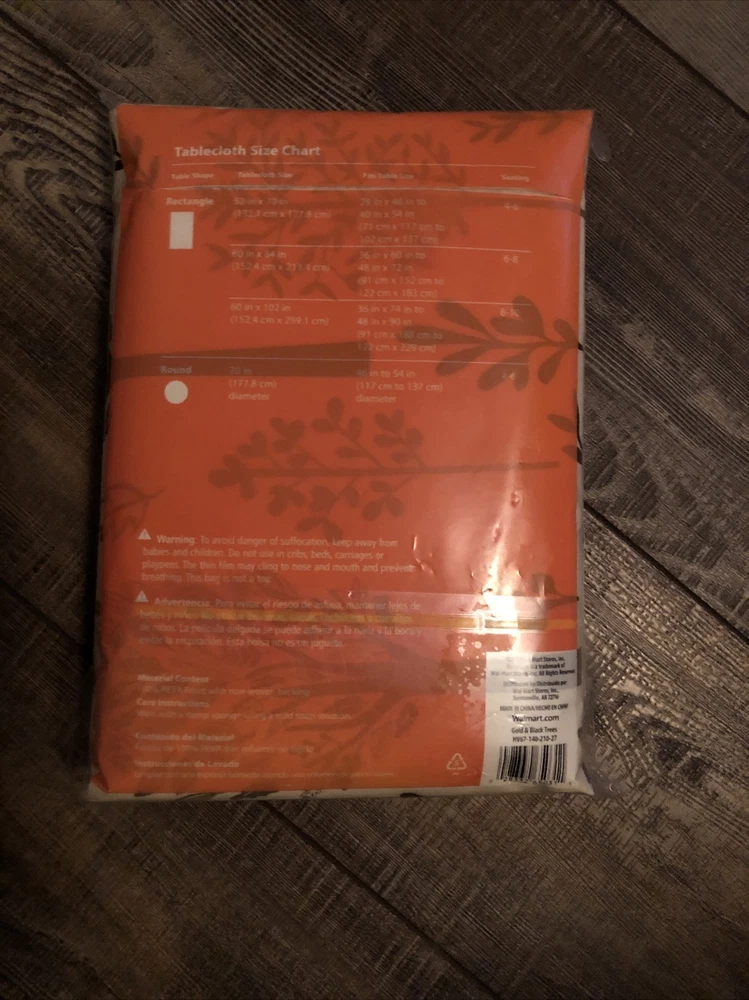 Mainstays Autumn Fall Trees Black & Beige Vinyl Tablecloth Flannel Back 52 x 70. Condition is New with tags. Shipped with USPS Ground Advantage.