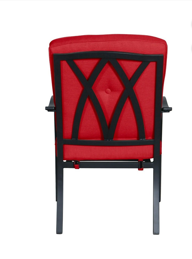 The Mainstays Belden Park 5-piece Outdoor Patio Dining Set in Red includes a set of chairs perfect for outdoor dining or lounging. The set comes with cushions for added comfort and is made of durable metal material, ensuring longevity. Assembly is required for this patio set, but once put together, it provides a stylish and functional addition to any outdoor space. The vibrant red color adds a pop of color to your patio or garden area.