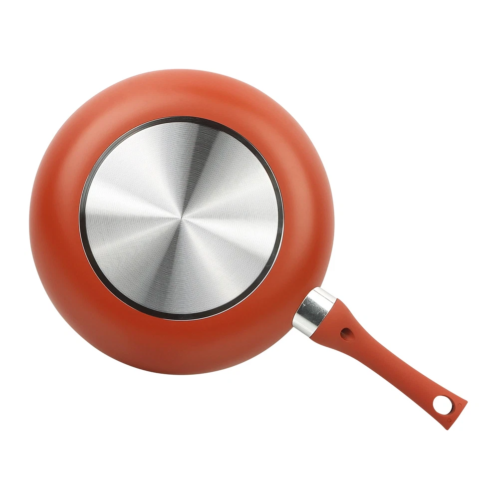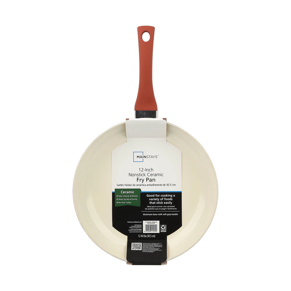 Update your kitchen essentials with the Mainstays Ceramic Aluminum Nonstick 12in Frypan Red Canyon. This 12in aluminum frypan is ideal for everyday cooking at home. Easy clean up. Aluminum body distributes heat more fast and even, it will help you save time cooking as well. The interior is coated with 2 layers of PPG Customized ceramic coating, which is healthy and makes cooking and clean-up easy. Handle is strongly connected by rivets. It is suitable for all cooktops except induction. The outside red color of this frypan will offer a bright of color to your kitchen Aluminum body for fast and even heating Riveted handle for strong connection Suitable for all cooktops except induction