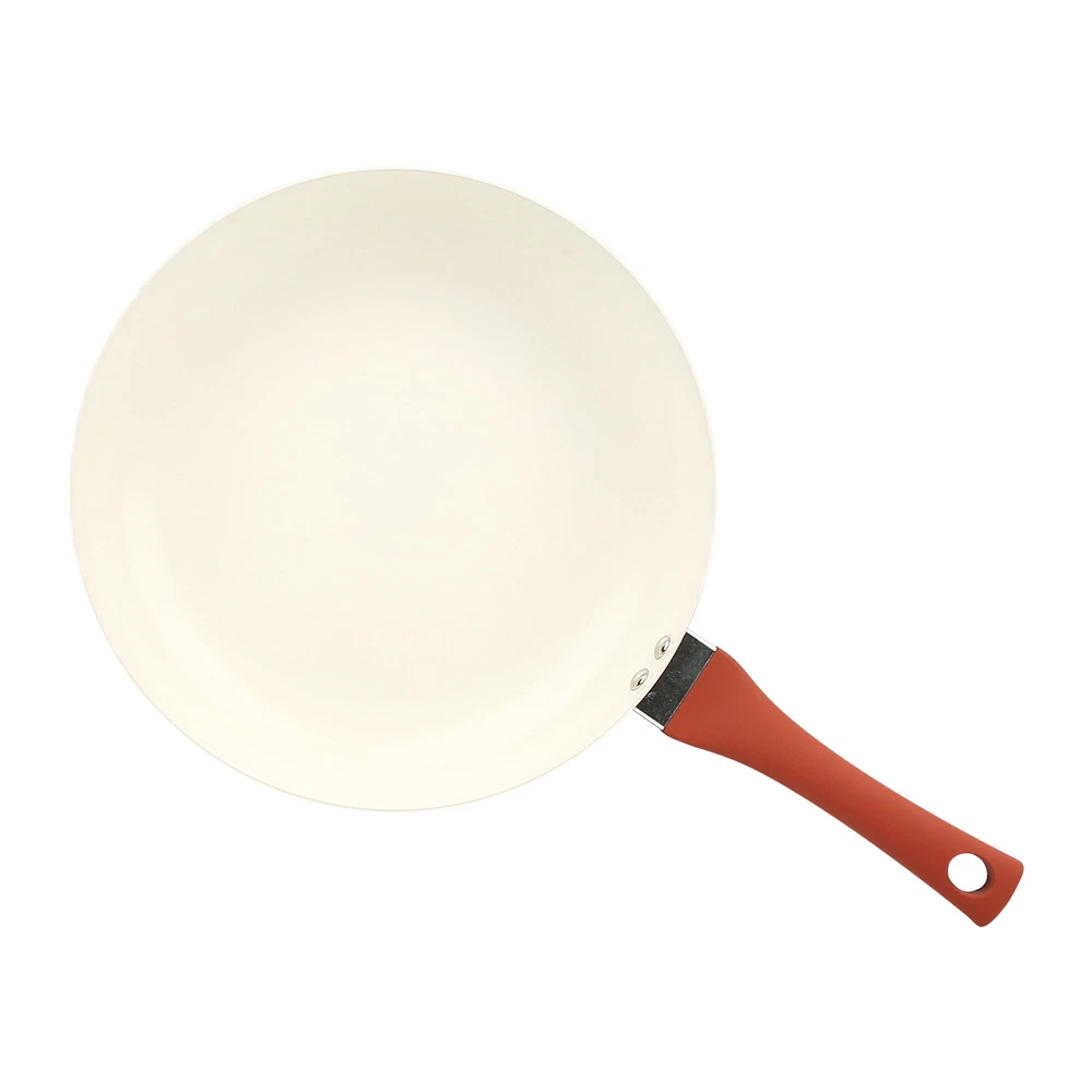 Update your kitchen essentials with the Mainstays Ceramic Aluminum Nonstick 12in Frypan Red Canyon. This 12in aluminum frypan is ideal for everyday cooking at home. Easy clean up. Aluminum body distributes heat more fast and even, it will help you save time cooking as well. The interior is coated with 2 layers of PPG Customized ceramic coating, which is healthy and makes cooking and clean-up easy. Handle is strongly connected by rivets. It is suitable for all cooktops except induction. The outside red color of this frypan will offer a bright pop of color to your kitchen Aluminum body for fast and even heating Riveted handle for strong connection Suitable for all cooktops except induction Mainstays Ceramic Aluminum Nonstick 12in Frypan Red Canyon