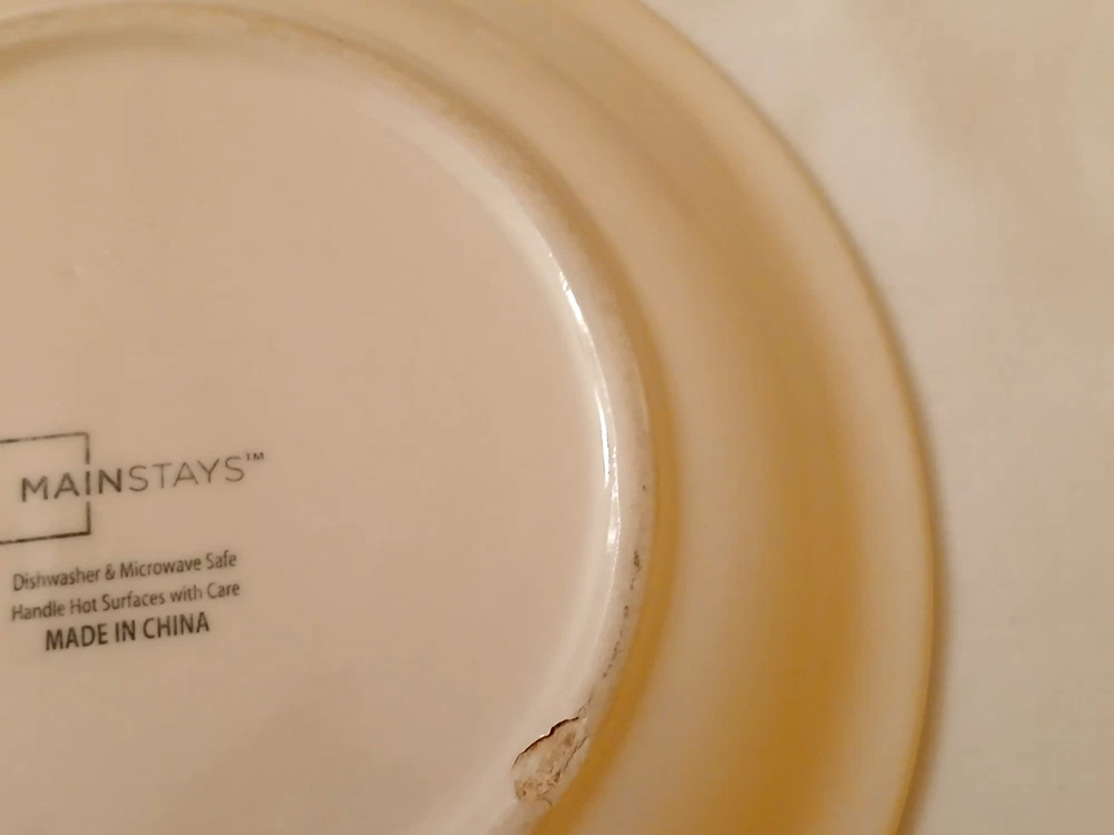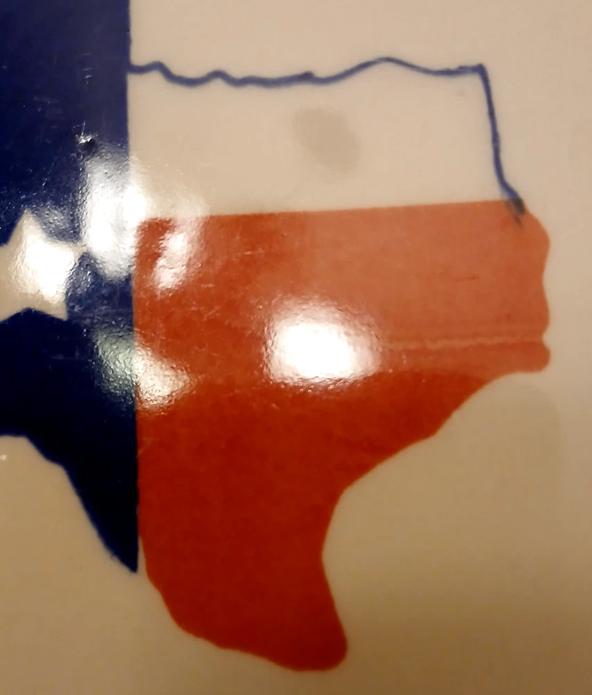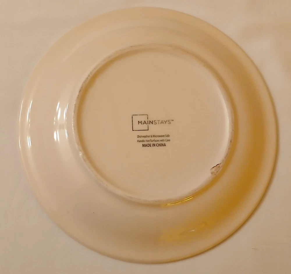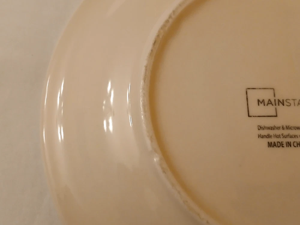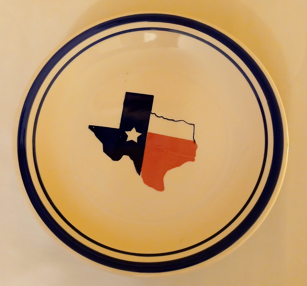 Mainstays ceramic state of Texas salad plate set of 3 7 1/2"diameter 3/4"tall. Utensil marks and spots on inside. Stains on outside. 1 has chip on outside bottom. Refer to pictures for condition. Made in China. Will consider all offers. Combine Shipping - will automatically be adjusted when items are placed in shopping cart.