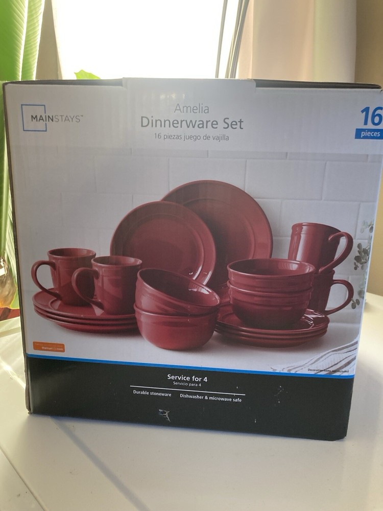 Mainstays Chiara Red Stoneware Dinnerware Set, 16-Pieces. Condition is New. Dispatched with USPS Ground Advantage....