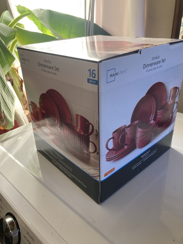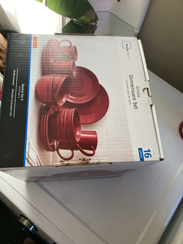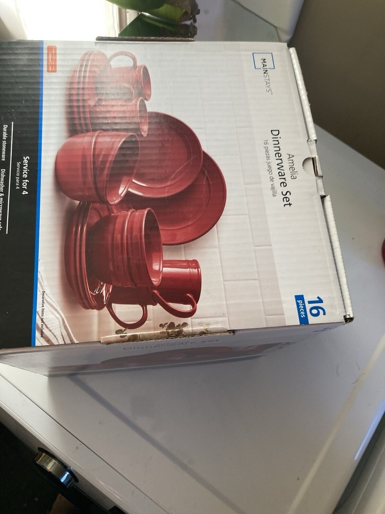 Mainstays Chiara Red Stoneware Dinnerware Set, 16-Pieces. Condition is New. Dispatched with USPS Ground Advantage.