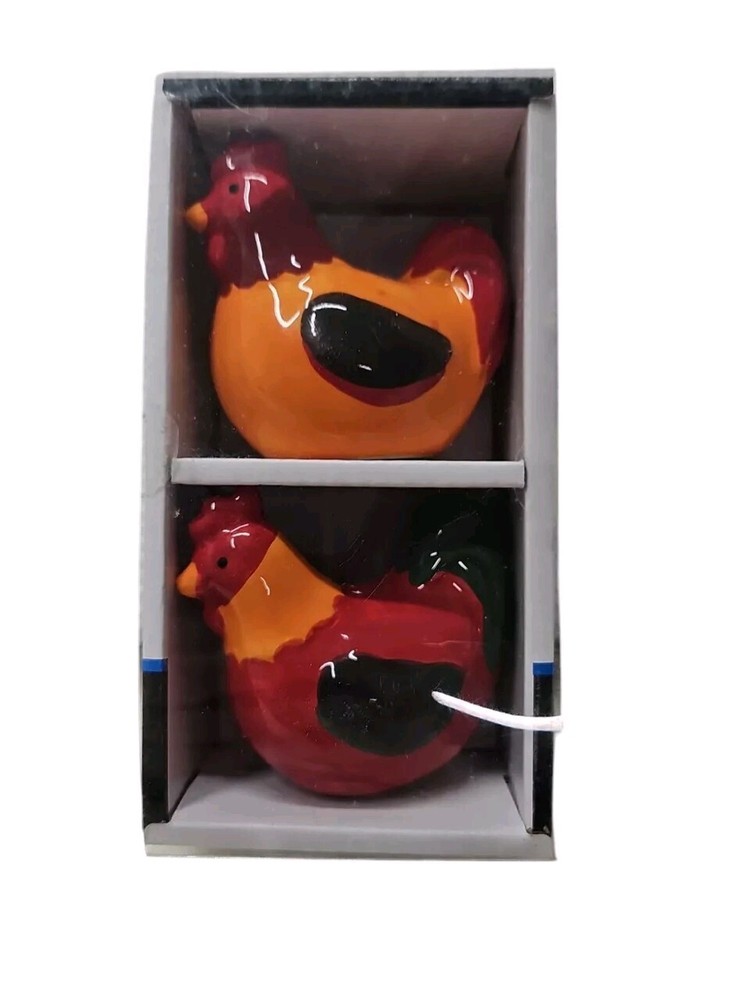 Spice up your kitchen with these adorable ceramic salt and pepper shakers in the shape of chickens. Measuring 3 inches in height and 2 inches in width, these shakers are perfect for any occasion and are sure to add a touch of country style to your table. The vibrant red, brown, and orange colors make them a fun addition to any kitchen decor. These shakers are designed with a top/lid and are hand wash only. They are not antique or custom, but they are an original piece manufactured in China in 2020. The set includes two items and is perfect for food compatibility as it is universal. Get these charming shakers today to add a unique touch to your kitchen!