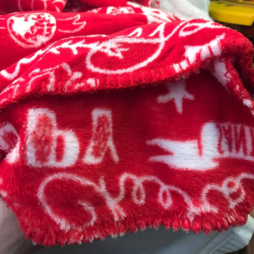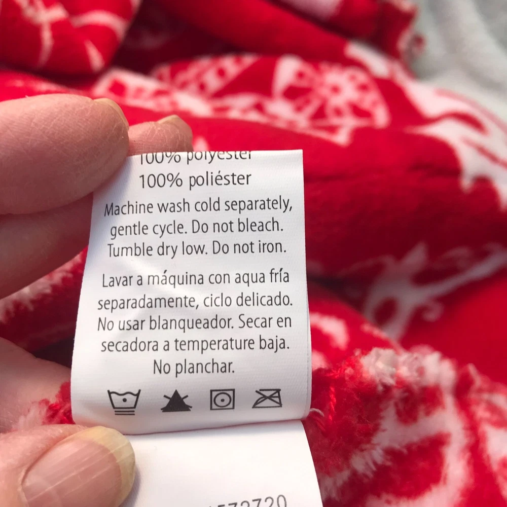 Cozy up with this festive fleece throw blanket. Perfect for battling those winter chills while binge-watching your favorite holiday movies. • Made from 100% polyester • Machine washable • Red with white holiday words • Size: 50" x 60" • Soft and warm