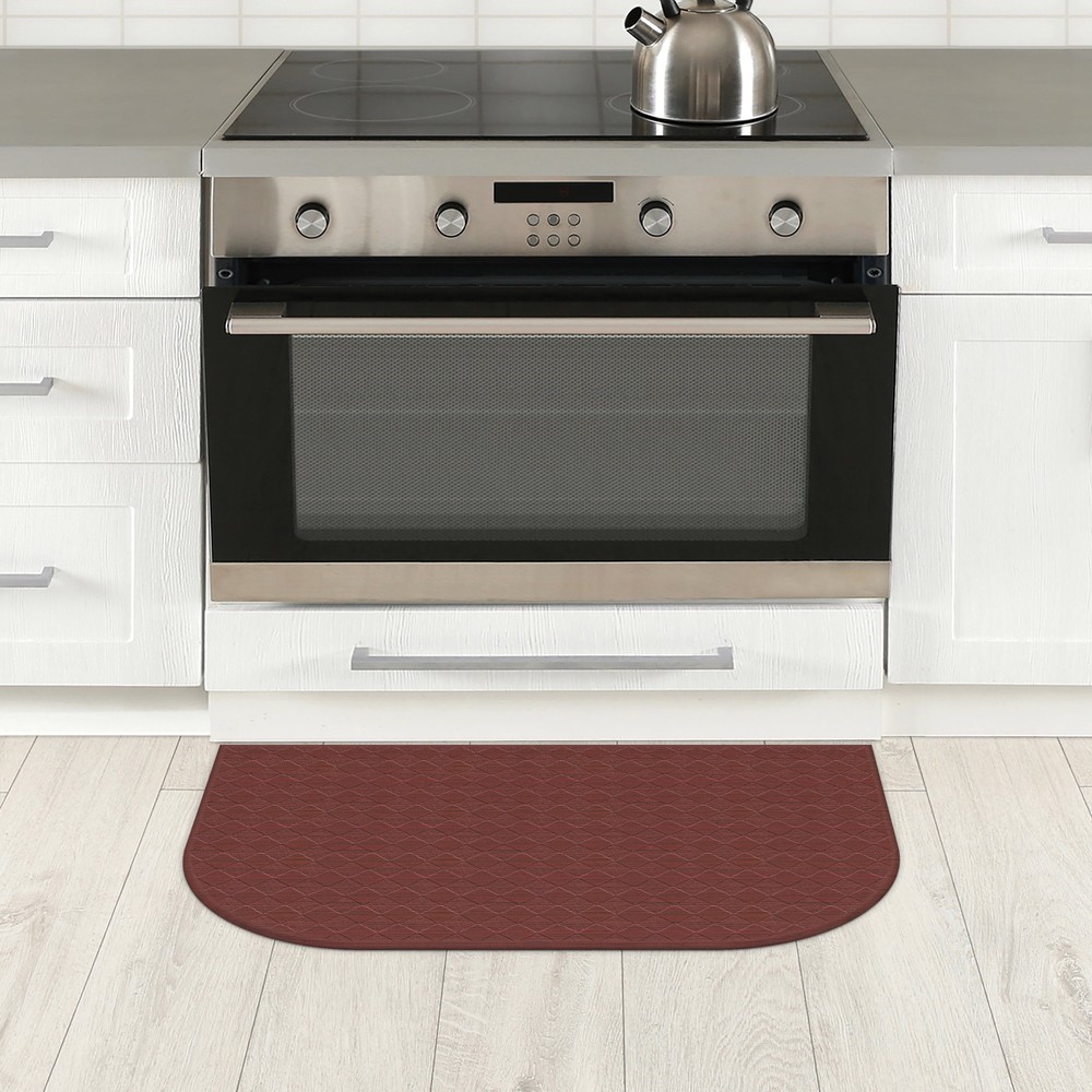 This kitchen mat is a game-changer for long hours on hard floors! The thick foam cushioning feels amazing underfoot, and the textured surface keeps it slip-free. Perfect for kitchens, laundry rooms, or even standing desks—it's both comfy and stylish with those beveled edges. The burgundy color adds a nice pop, and it's held up well to daily use. Definitely worth it for anyone who stands a lot!