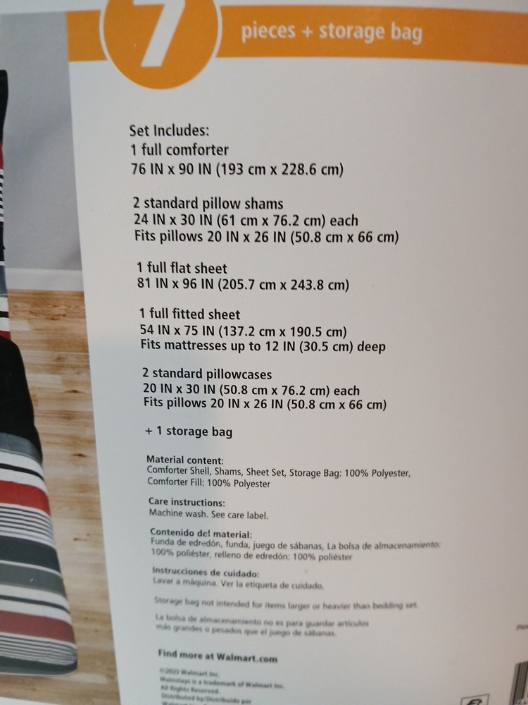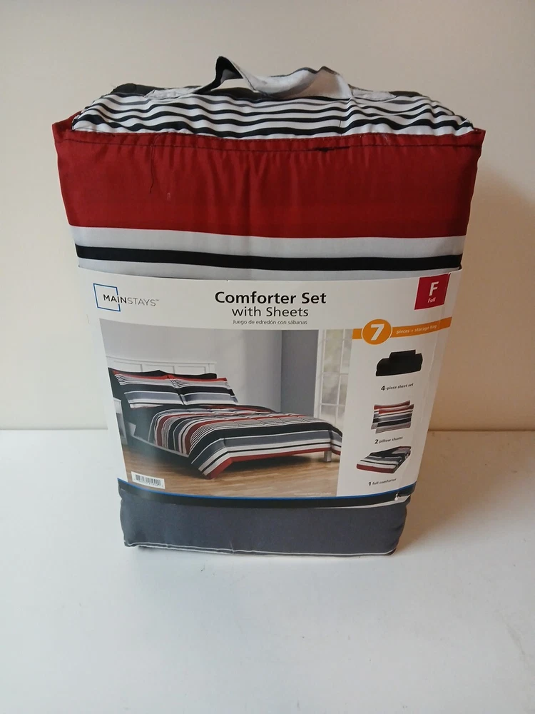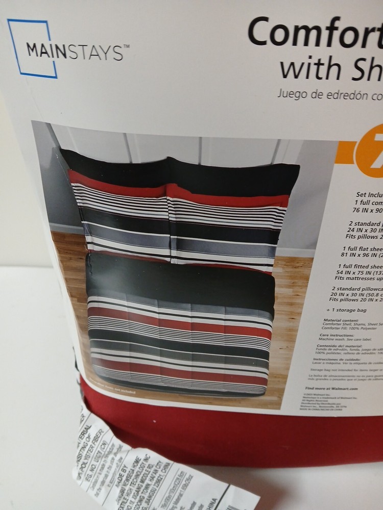 Mainstays Comforter Set with Sheets Full Size (7 Pieces) Fitted sheet Flat sheet 2 - pillow cases Comforter 2 - pillow shams 100% polyester...