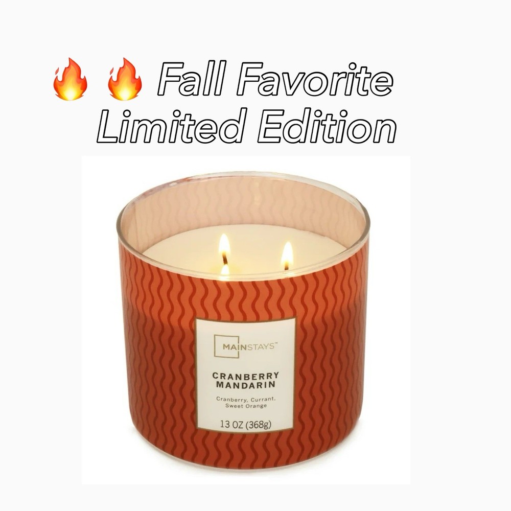 , ππ Enjoy the warm, inviting aroma of the Mainstays Cranberry Mandarin 3-Wick Candle β perfect for adding a cozy, festive scent to any room! β’ Brand: Mainstays β’ Scent: Cranberry Mandarin (fruity & festive) β’ Size: 13 oz glass jar with 3 lead-free wicks β’ Burn Time: Up to 25β30 hours of continuous fragrance β’ Features: β’ Long-lasting scent release β’ Stylish round glass jar design in rich red β’ Ideal for fall dΓ©cor, holiday gifting, or everyday use β’ Condition: New, unopened in original packaging β’ Shipping: Fast, free shipping