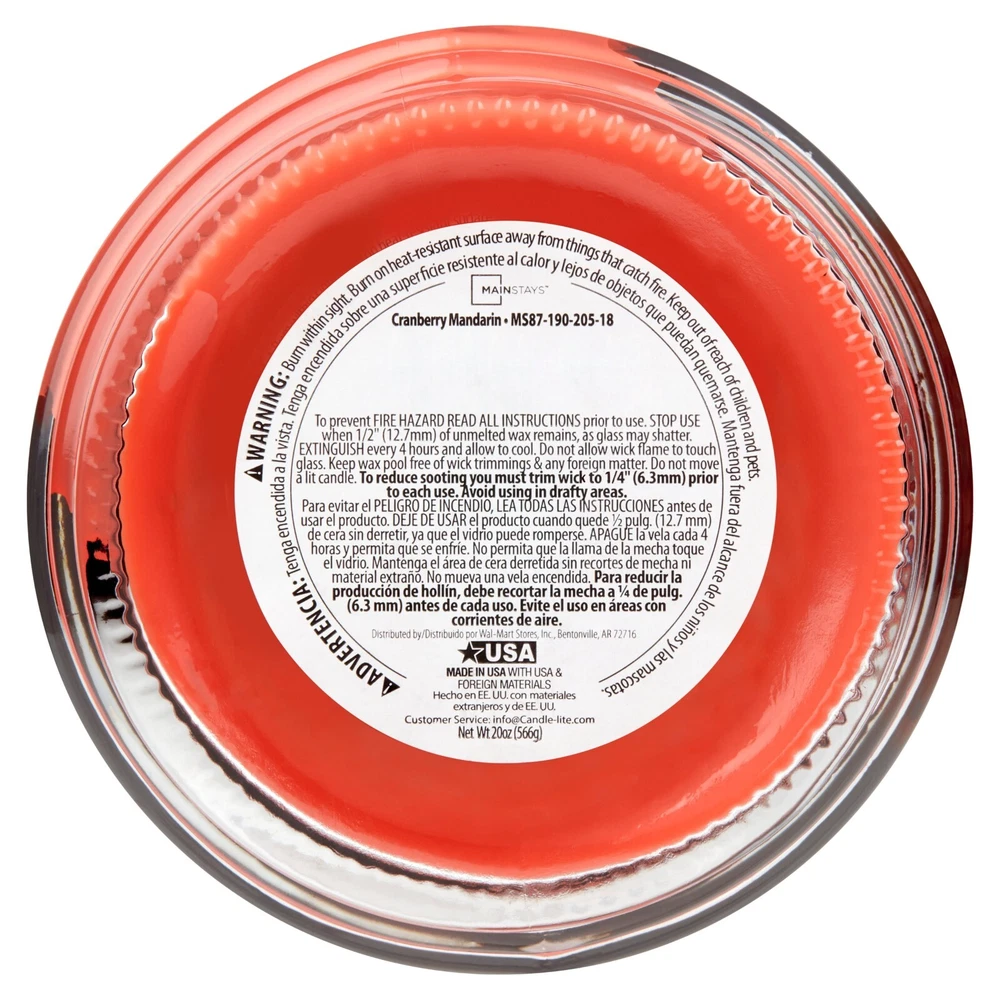 Mainstays Cranberry Scented Mandarin Single-Wick Large Glass Jar Candle, 20 oz About this item Product details Introduce a soothing aroma into your living space with the Mainstays Cranberry Scented Mandarin Single-Wick Large Glass Jar Candle. Mainstays scented candles are highly fragranced and provide a clean and even burn that will fill your home with beautiful and enticing seasonal aromas. Place this candle in the kitchen, living room or dining room where you can enjoy it when entertaining guests or anytime you want to relax. Trim the wick periodically to promote even burning. Mainstays offers a wide selection of candle scents to explore and enjoy. Shop all of our Mainstays scents online and in-store. Treat yourself to the enticing scent of the Mainstays Cranberry Scented Mandarin Single-Wick Large Glass Jar Candle. Mainstays Cranberry Scented Mandarin Single-Wick Large Glass Jar Candle, 20 oz Mainstay Cranberry Mandarin fragrance, contains sun-ripened cranberries embellished with tangy hints of fresh currant, juicy raspberry, and sparkling mandarin. This fragrance has been a staple in households and a favorite for many years. This fragrance would fall in the FRUIT category. Complements virtually any room decor 20 oz. single-wick candle burns for approximately 100-120 hours Features a decorative beveled edge glass vessel Mainstays single-wick scented candles are highly fragranced, and provide a clean and even burn that will fill your home with beautiful and enticing aromas Our candles are made from high quality, non-toxic, clean-burning wax that is specifically developed to hold optimal fragrance loads Our Mainstays 20oz candle is available in a variety of scents Directions Instructions Extinguish every 4 hours and allow to cool. Do not allow wick flame to touch glass. Keep wax pool free of wick trimmings & any foreign matter. Do not move a lit candle. To reduce sooting you must trim wick 1/4" prior to each use. Avoid using in drafty areas. Contact us We can be contacted at any time through eBay messages if you have any questions, comments or product requests. We will respond to you within 24 hours and do our best to help you out! We encourage our customers to contact us with any questions or concerns! We'd like to be sure you are completely satisfied with your purchase. Shipping We offer FREE shipping on all orders! We ship within 7 business days of payment, usually sooner. We use a selection of shipping services such as UPS, FedEx, USPS etc. We only ship to the lower 48 states, no APO/FPO addresses or PO Boxes allowed. Local pickups and combined shipping options are not provided at this time. Feedback Customer satisfaction is very important to us. If you have any problem with your order, please contact us and we will do our best to make you satisfied. Thank you for shopping at our store a