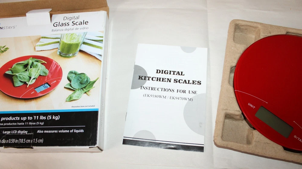 Mainstays Digital Glass Scale Produce Kitchen Scale Red MS87-020-100-02 Turns on / I am not sure but battery may have low power Use photo’s for additional description. Actual Photos. If you have any questions, please message me. I will get back within 24 hours. Check out my other over 100 items listed. Ask About Combined Shipping & Local Pick-Up Ships Fastest/Cheapest I acquire all of my items at auctions, estate sales and barter so cannot be sure of their history or whether they've come from smoke-free or pet-free homes.