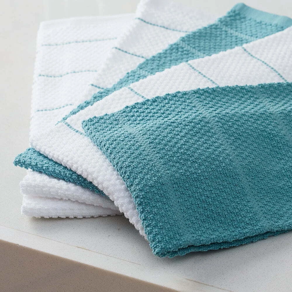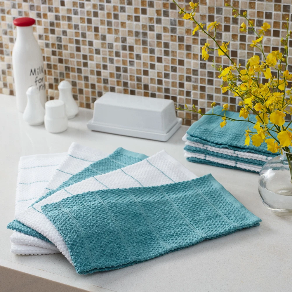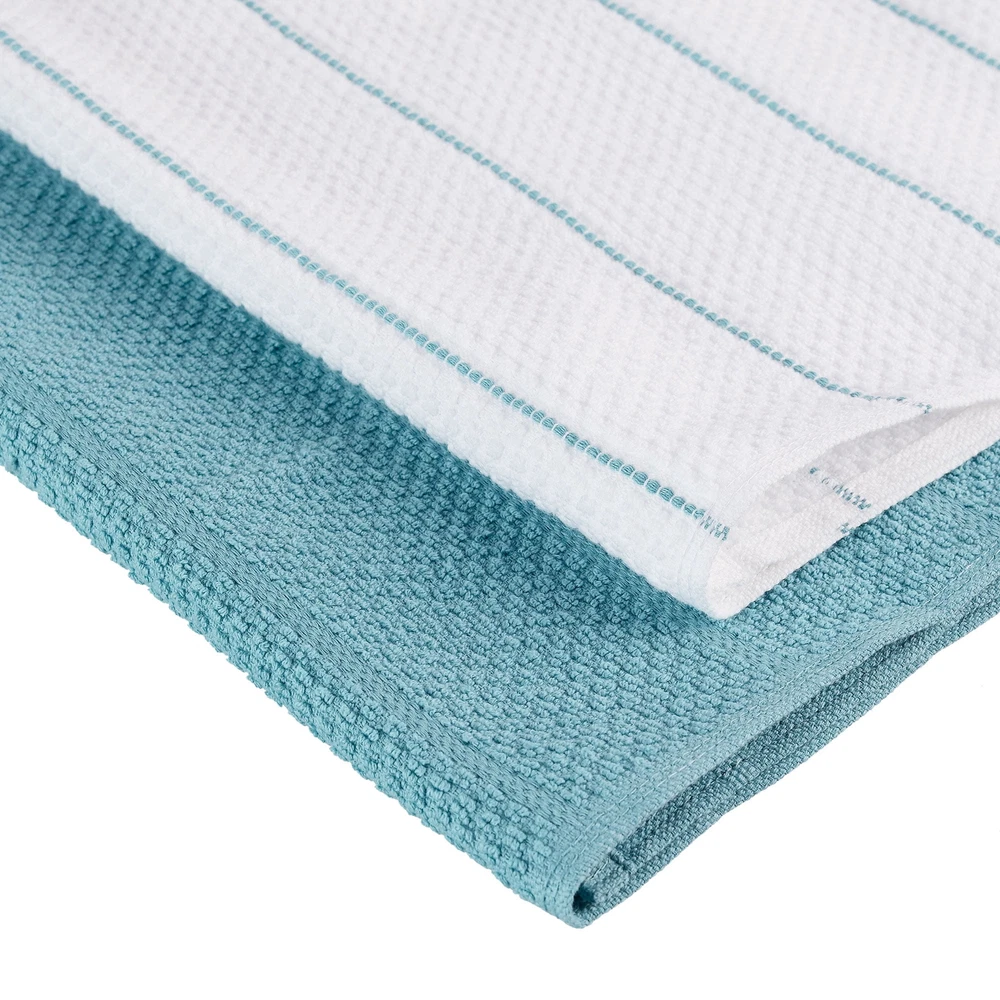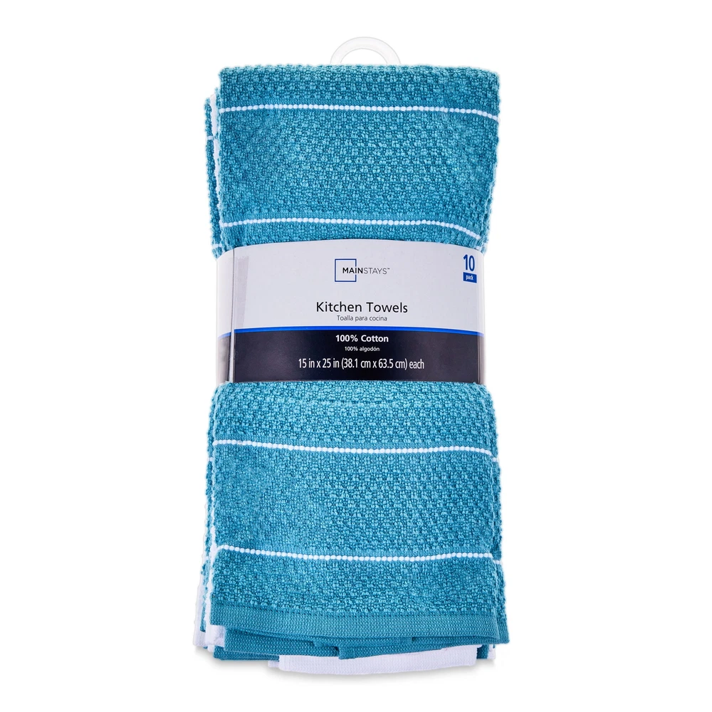 The soft and absorbent Mainstays Dobby Rice Weave towel will quickly become your new favorite kitchen accessory. Equal parts functional and stylish, the Mainstays Dobby Rice Weave Kitchen towel is made of 100% cotton with the decoration made from other fabrics, to make clean up time easy — whether you're soaking up accidental spills, drying dishes and glassware, or wiping kitchen countertops. The versatile design means that it can be used as a dishtowel, bar towel, tea towel, or simply as a decorative accent for your kitchen's décor. Caring for the Mainstays Dobby Rice Weave Kitchen towel is easy: machine wash in warm water with like colors on your normal cycle setting. Take care not to bleach and to tumble dry on low, and it's all ready to use again. Available in Soft Silver, Red Sedona, and Topaz Blue colors. Make a splash in your kitchen décor with this charming towel that exudes summertime joy — perfect for family get-togethers, outdoor cookouts, or as a lovely housewarming gift Great for drying dishes and hands, mopping up wet spills, or keeping kitchen surfaces clean, this stylishly versatile towel is an essential addition to any household Soft cotton construction is absorbent, durable, and comforting on bare hands Includes 10 kitchen towels 2 different designs of towel so you can feature Mainstays Dobby Rice Weave Kitchen Towel measurements: 15" x 25" Wash before use; machine wash warm with like colors on normal cycle. Do not bleach. Tumble low dry Made in Green by OEKO-TEX®; towels are produced sustainably in accordance with OEKO-TEX® guidelines Made with BCI Cotton FSC Certified Packaging
