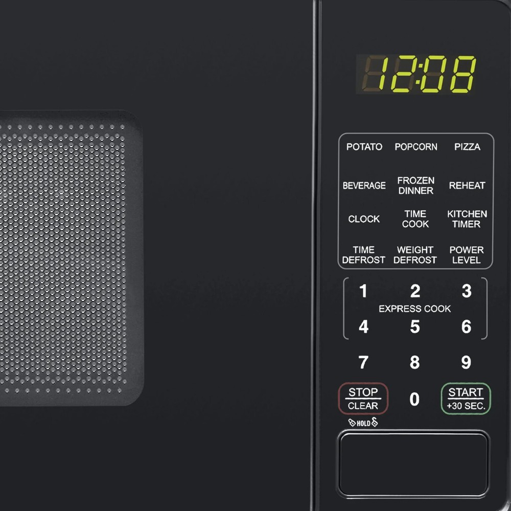 Introducing the Mainstays 0.7 Cu ft 700-Watt Compact Countertop Microwave Oven, available in Black, Red, or White to suit any kitchen, dorm room, office, or rec room. It boasts an LED display, kitchen timer, clock, six quick-set menu buttons, 10 power levels, child safety lockout, weight and time defrost, and a 30-second one-touch option. Perfect for any home, it's an essential addition. Pair it with other items from the Mainstays kitchen collection, which offers colorful and decorative designs applied to simple basics, ensuring a vibrant and efficient daily life. Browse efficiently by making a list of needed items and using product filter's.Mainstays 0.7 cu. ft. Countertop Microwave Oven, 700 Watts, Black, New Capacity 0.7 Cu ft700-Watt Power LED display Kitchen timer & clock10 Power levels Weight & time defrost6 Quick-set menu buttons30 Second one-touch option Child-safe lockout Push-button door opening Condition: New Stock Number: MSF0B100072352