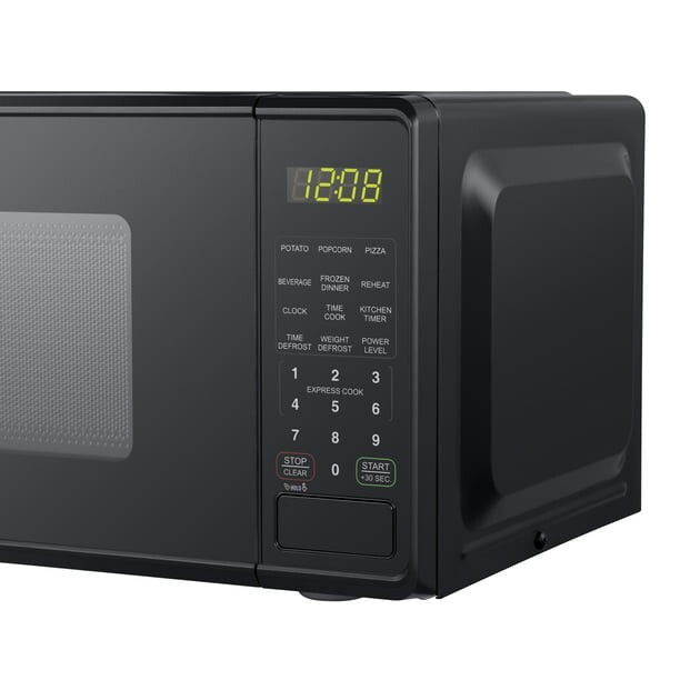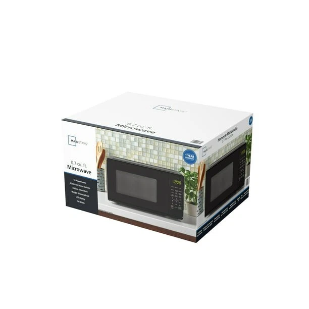 Upgrade your kitchen with the Mainstays 0.7 Cu ft 700-Watt Compact Countertop Microwave Oven, available in three stylish colors: Black, Red, or White. Whether you're in a dorm room, office, or rec room, this microwave oven is designed to complement your space. Equipped with a user-friendly LED display, kitchen timer, and clock, this microwave oven offers convenience at your fingertips. With six quick-set menu buttons, you can easily prepare your favorite dishes with just a touch. Ten different power levels allow you to cook a variety of foods to perfection, while the weight and time defrost options make thawing frozen items a breeze. Safety is a priority with the Mainstays microwave oven, as it features a child safety lockout to prevent accidental use. The 30-second one-touch option provides quick and easy heat