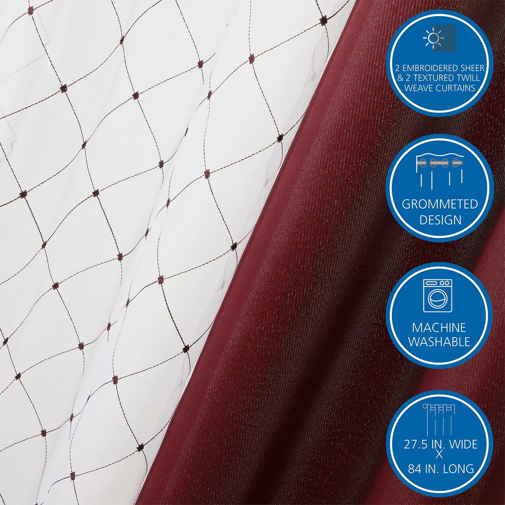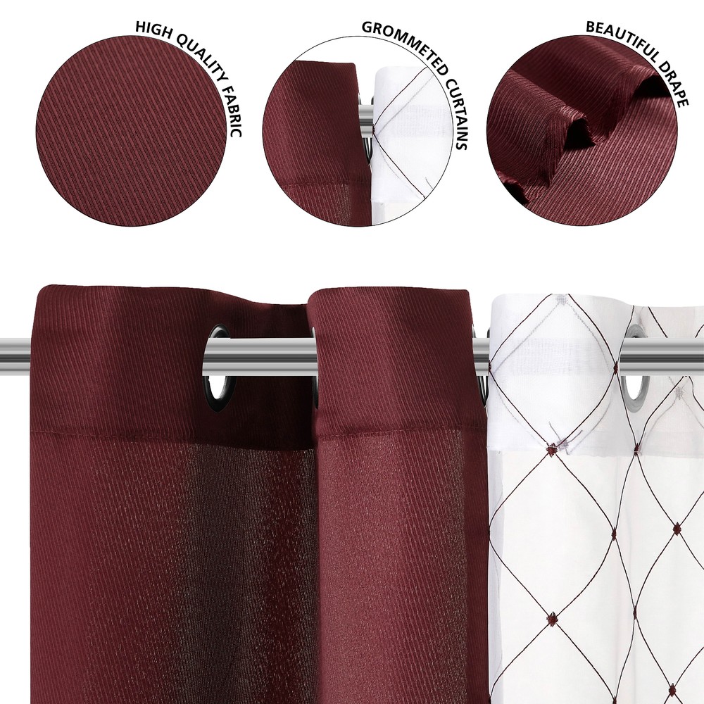 These curtains are stunning! The burgundy color is rich, and the embroidered sheers add such an elegant touch. They hang beautifully with the grommet top and instantly elevate my living room. Plus, they’re easy to wash—no hassle at all. Perfect for anyone wanting a quick, stylish upgrade!