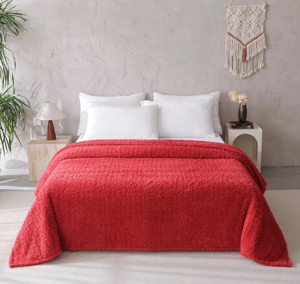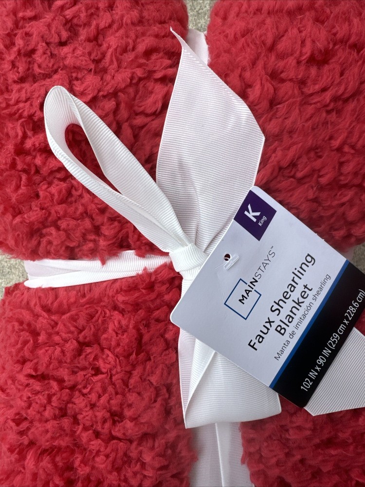 Mainstays Faux Shearling Blanket, Dk. Red, King 102"X90", for Adult. Condition is New with tags. Shipped with USPS Ground Advantage....