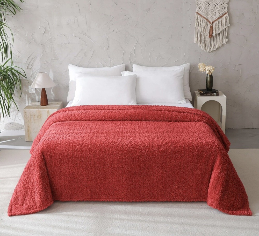 Mainstays Faux Shearling Blanket, Dk. Red, King 102"X90", for Adult. Condition is New with tags. Shipped with USPS Ground Advantage....