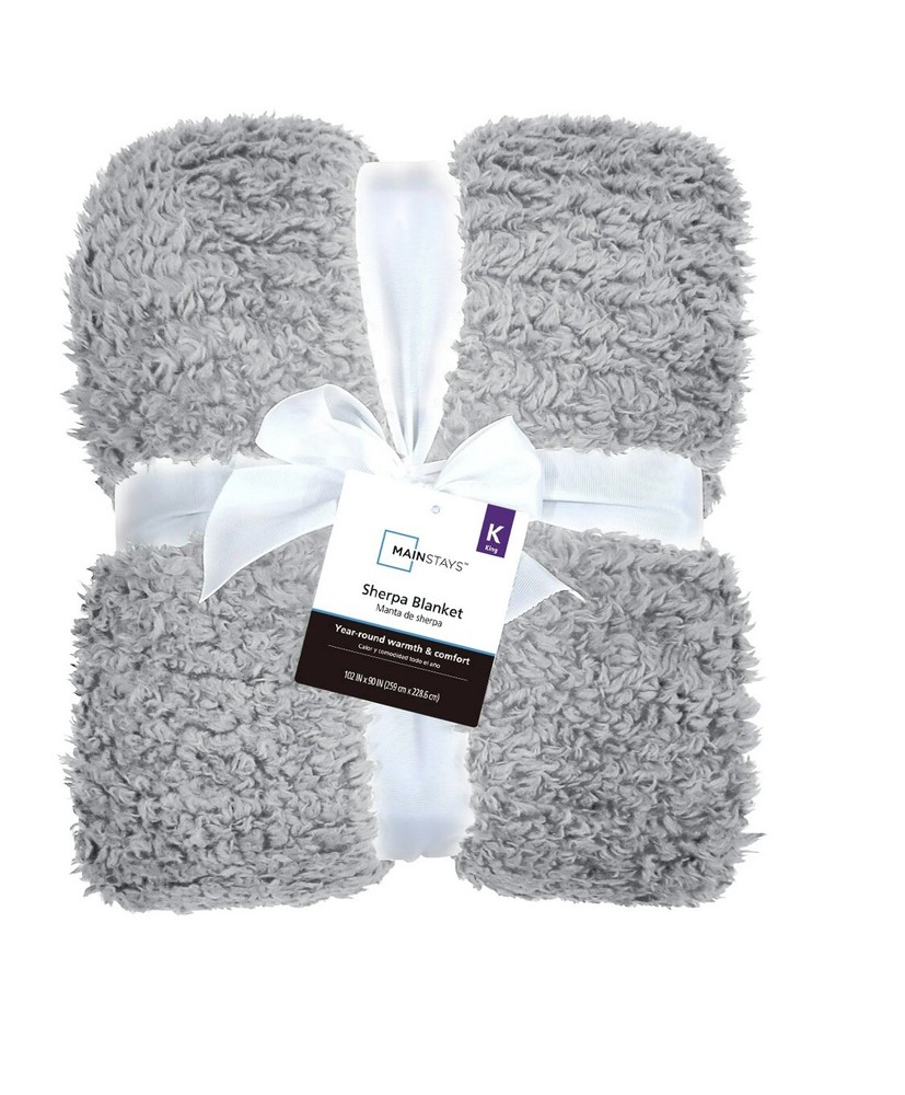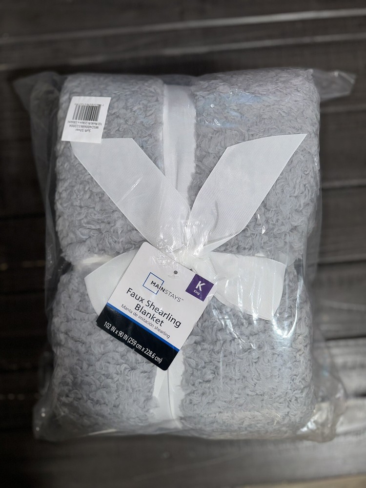 Brand new Mainstays Faux Shearling Blanket, Lt. Gray, King 102"X90", for Adult...