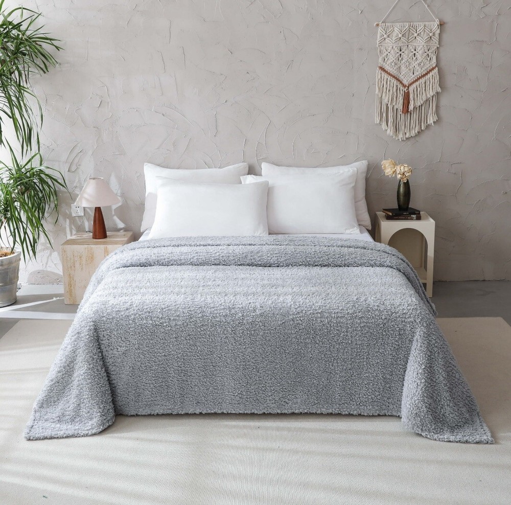 This blanket is incredibly soft and cozy—perfect for chilly nights! The king size gives plenty of room to snuggle up, and the faux shearling feels luxurious without being too heavy. Light gray looks elegant and matches any decor. Washes well and stays plush. Great value for the price—highly recommend!